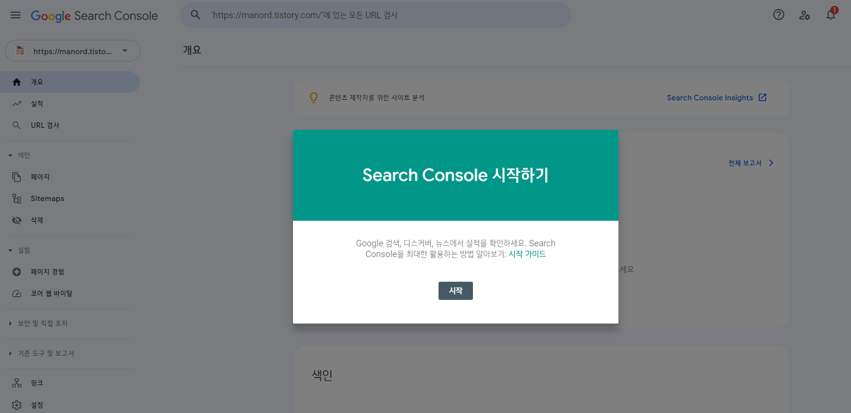 이제 나의 티스토리 블로그와 구글 서치 콘솔을 연결시켰으니, 서치 콘솔을 통해서 다양한 작업들을 진행하고 모니터링 할 수 있습니다.
