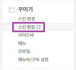 이제는 위에서 복사한 메타태그를 본인의 티스토리 블로그에 붙여 넣어줘야 합니다. 그러기 위해서 먼저 티스토리 관리자 페이지로 접속해, "꾸미기" 밑에 있는 "스킨편집" 메뉴로 들어가 줍니다.