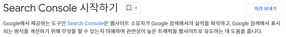 구글의 검색 센터 문서에서 찾은 내용인데요. 웹사이트 소유자가 Google 검색에서 실적을 파악하고 조치를 해 관련성이 높은 트래픽을 웹사이트로 유도하게 해주는 도구입니다.
