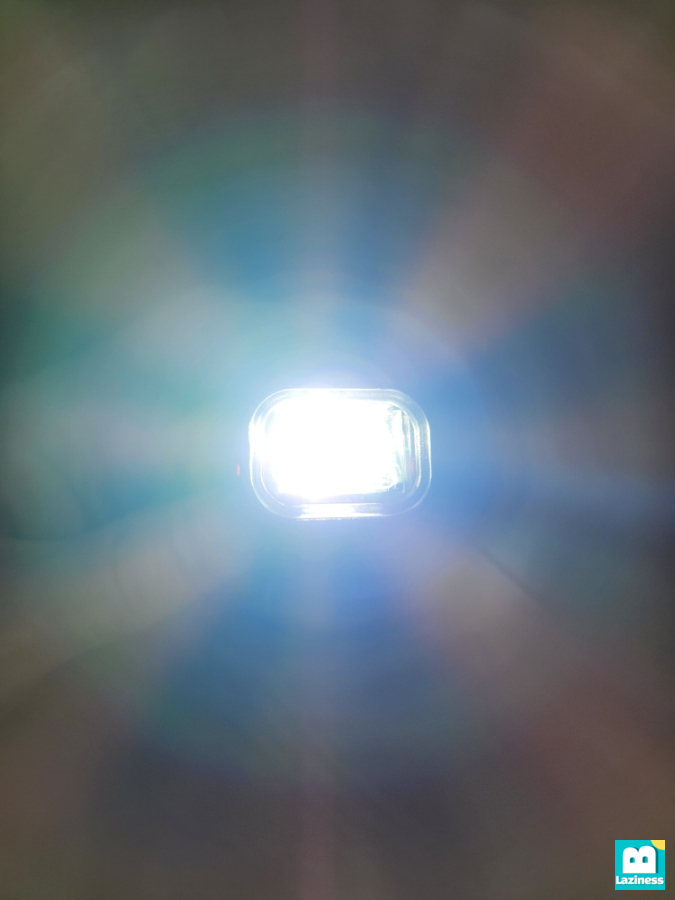 라이트의 전면이 모습은 아래와 같고, 설치된 렌즈 때문에 LED가 몇개 박혀있는지는 잘 안보입니다. 하지만 400루멘의 밝기라 상당히 밝으니 눈으로 직접 바라보면 안되겠습니다.