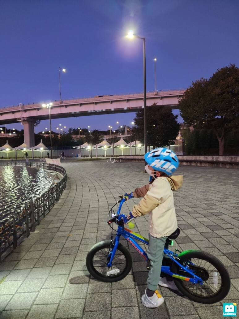 이 포스팅을 읽는 분들이 가장 궁금한 것이, 아이들이 어두울 때 자전거를 타면서 라이트가 얼마나 밝고 시인성이 좋은가 이겠지요?