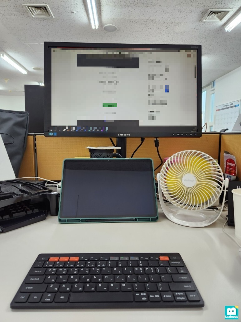 넓어진 책상 덕분에 삼성 갤럭시탭 S8 플러스도 추가로 앞에 두고 활용을 할 수 있습니다.