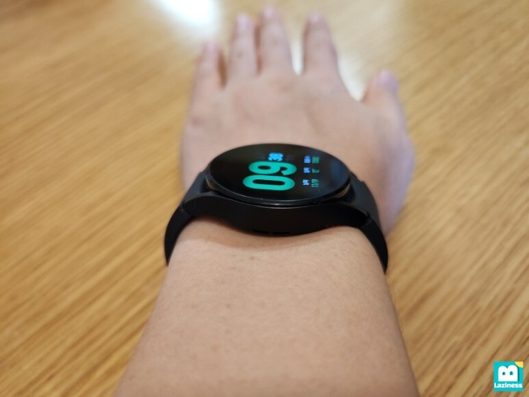 성인 남자 손목기준으로 굵지는 않지만 갤럭시워치4 40mm도 작다는 느낌은 없으며, 사이즈가 작은 덕분에 아주 가볍고 손목 부분에 전체적으로 밀착이 되는 느낌을 받았습니다.