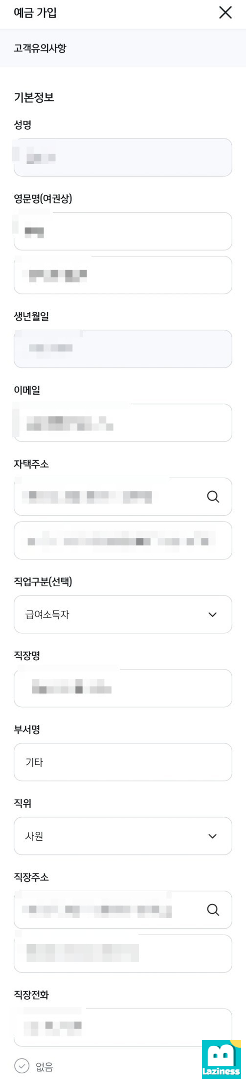 예금 가입 순서