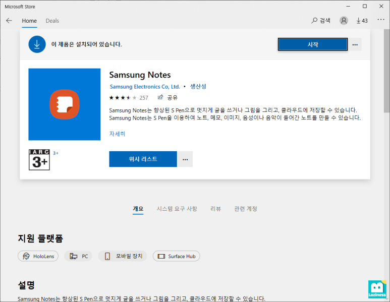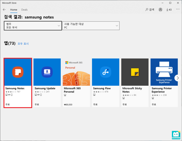 마지막으로 사용하는 PC에서도 동기화하기 위해 Microsoft Store에 들어가서 Samsung Notes를 검색해봤습니다. (참고로 노트북은 LG전자의 그램 노트북입니다)