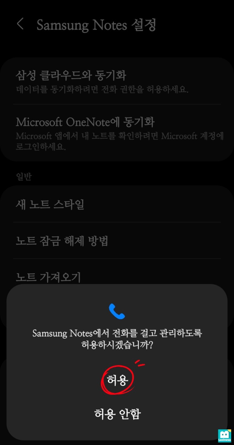 새 노트 작성을 누르면 마이크 권한 허용을 진행합니다. 아마도 삼성노트를 작성할 때 회의하는 목소리도 녹음도 할 수 있나봅니다.
