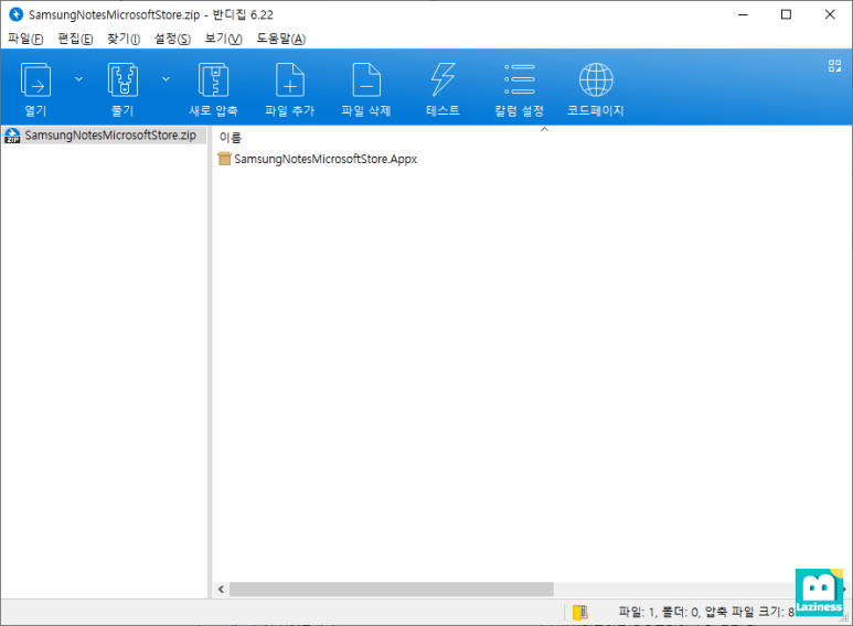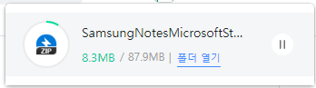 웹브라우저에서 실제 다운로드 되는 파일은 "SamsungNotesMicrosoftStore.zip"로 압축된 파일입니다.