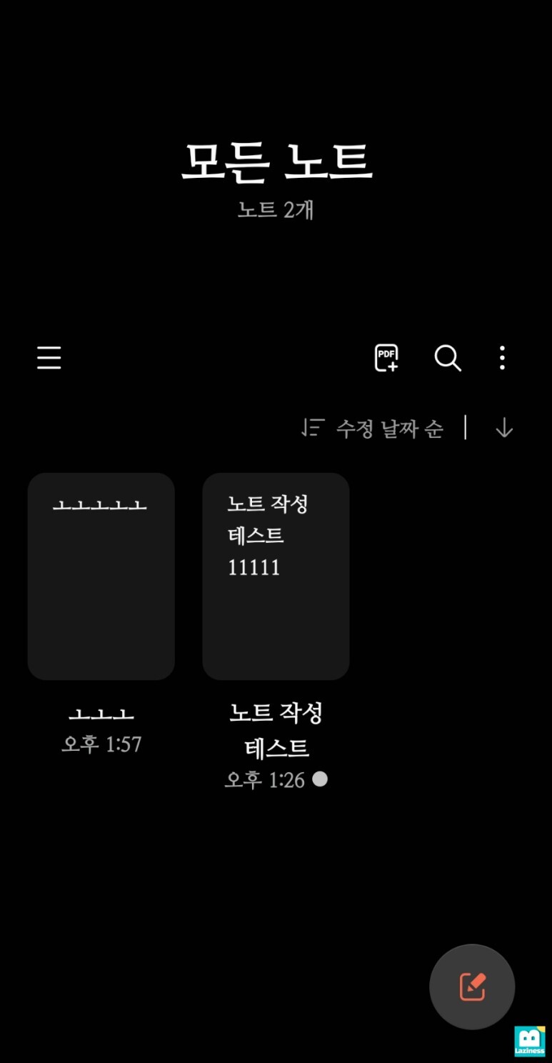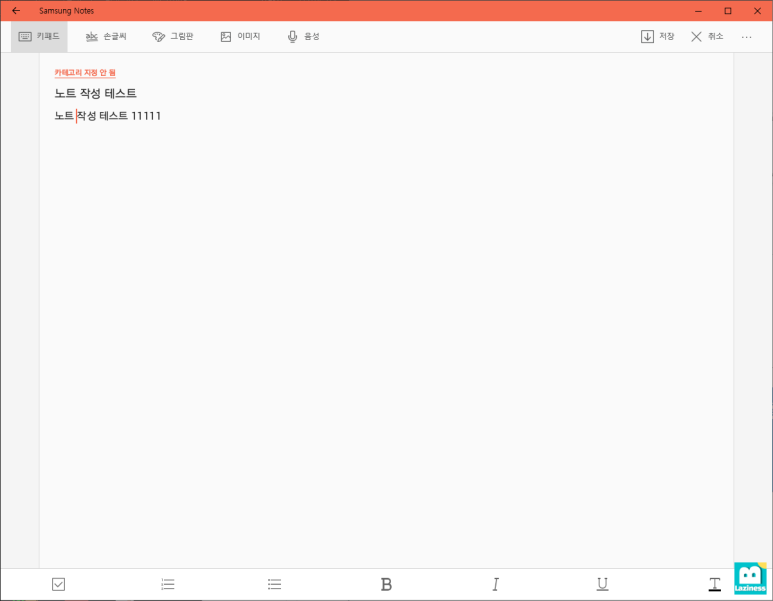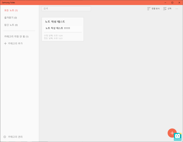 "노트 작성 테스트"라는 타이틀로 메모를 작성했습니다.