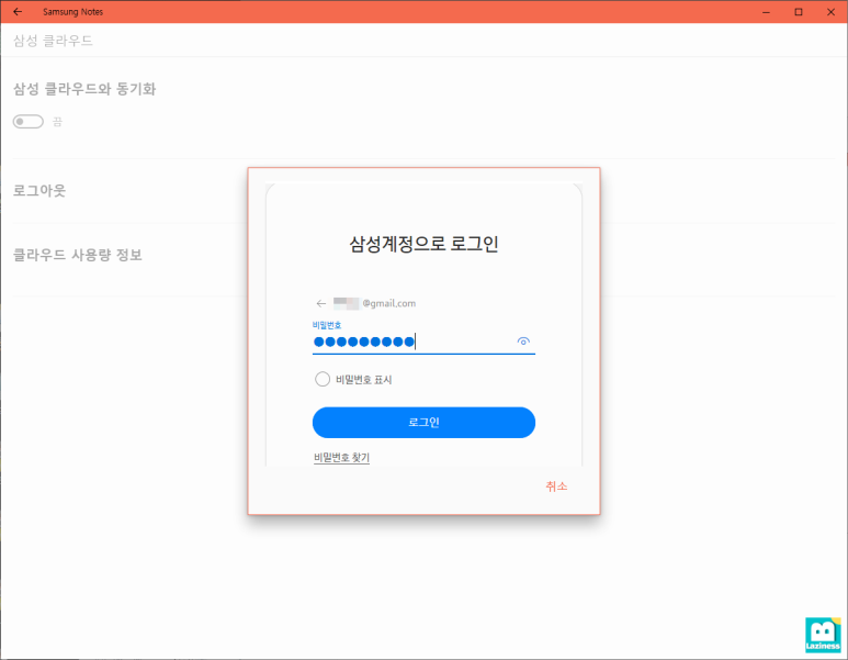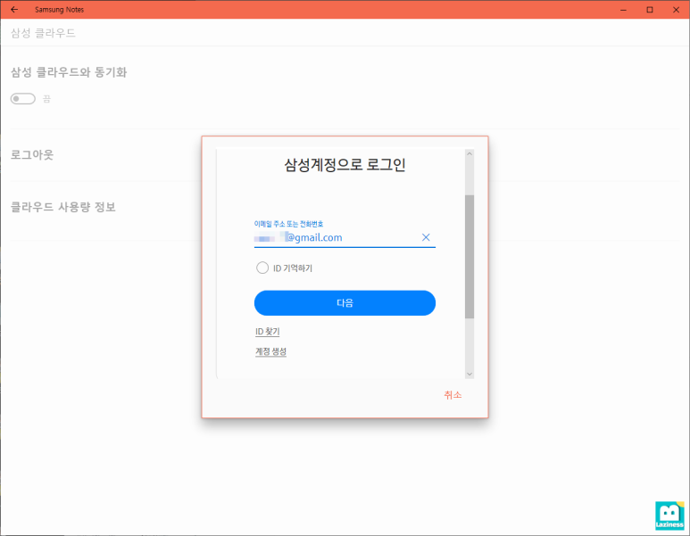 그럼 기존에 핸드폰과 테블릿PC에서 사용한 삼성계정으로 로그인을 진행하구요.