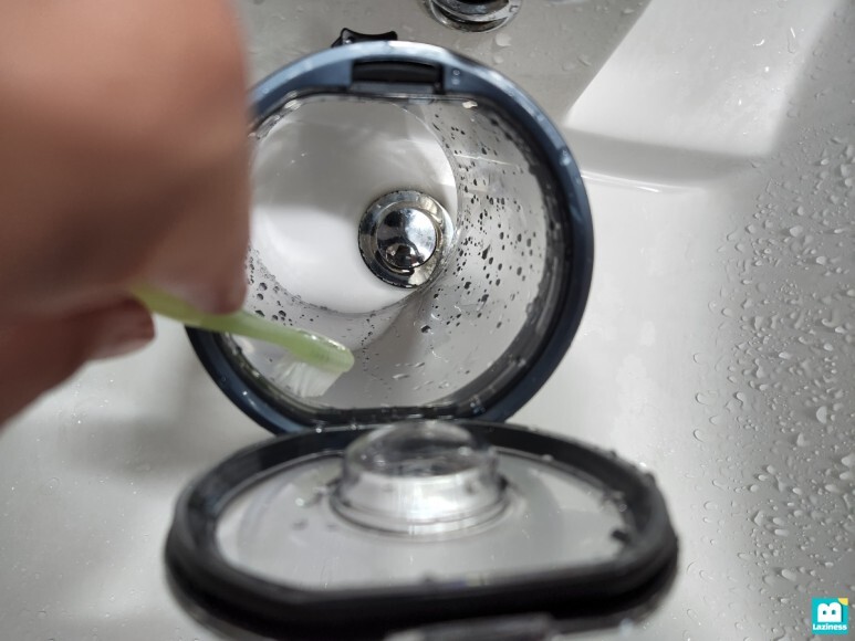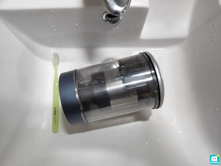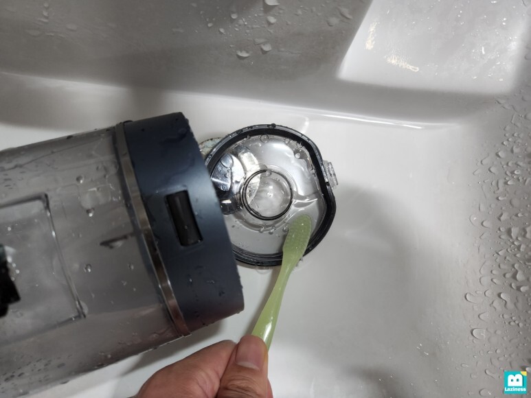 부드러운 칫솔을 사용해야 하는 이유가 아래와 같이 투명한 부품들을 청소할 때 스크래치가 나지 않도록 하기 위함이구요. 부드러운 칫솔을 먼지통 안으로 넣어 먼지통 안도 깨끗하게 세척합니다.