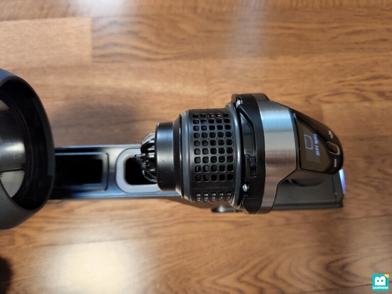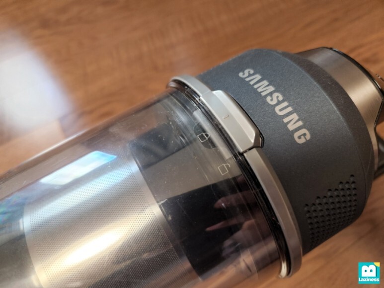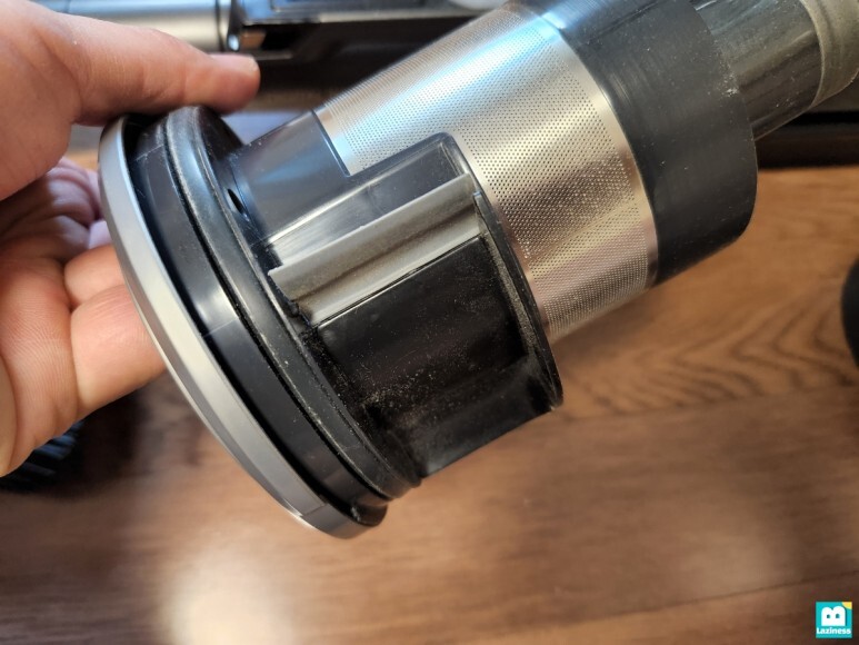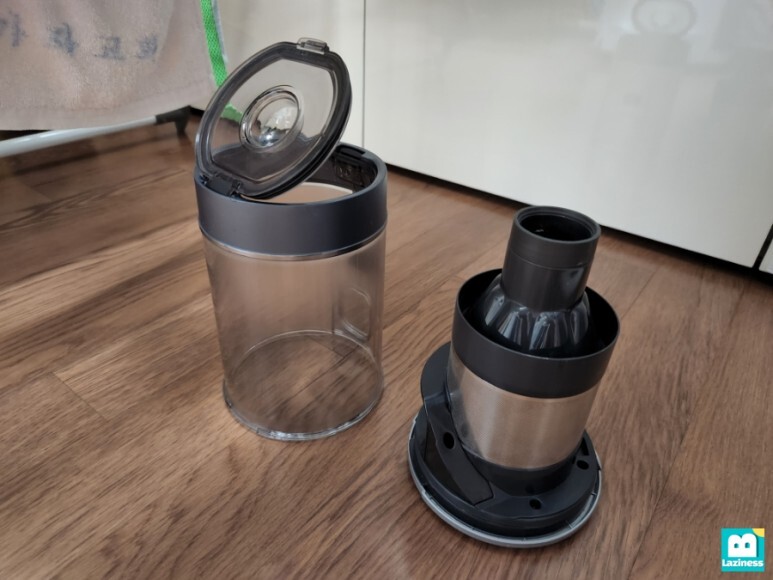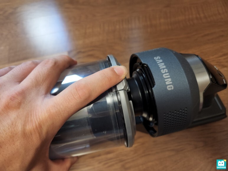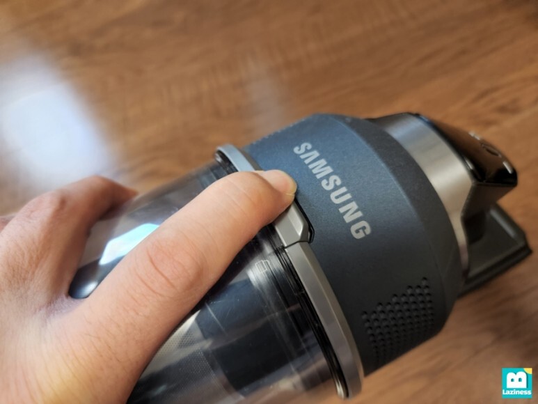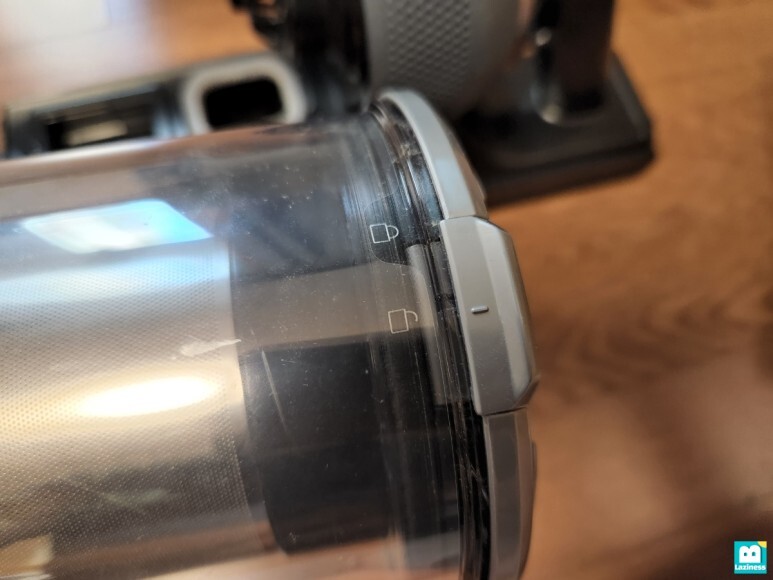 이를 누른 상태에서 잡아 아래로 당겨주면 먼지통이 분리가 됩니다.
