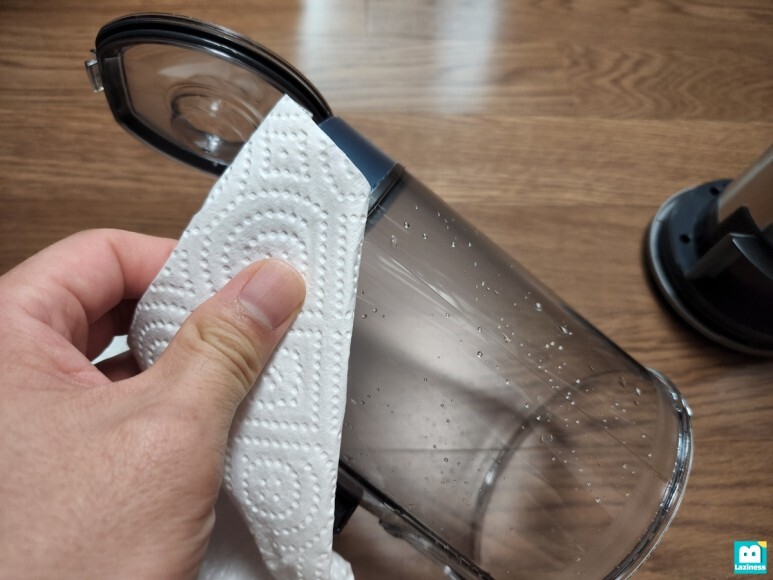 손이 닿는 부분이라도 키친타올로 물기를 깨끗하게 닦아내어 주니 당장이라도 청소 할 수 있을 것 같지만, 안에 물기를 완벽하게 건조시키고 사용해야하죠.