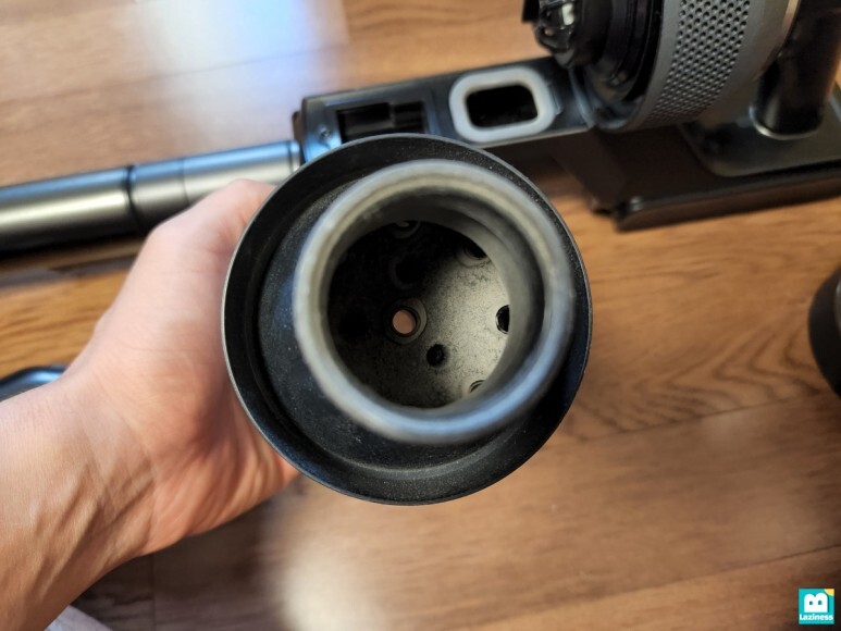 분해한 부분의 안쪽을 살펴보면 하얀색의 모터 필터가 있는데요. 청정스테이션을 매번 잘 사용해서 그런지 여기도 깨끗하니 별도의 청소가 필요 없을 듯합니다.