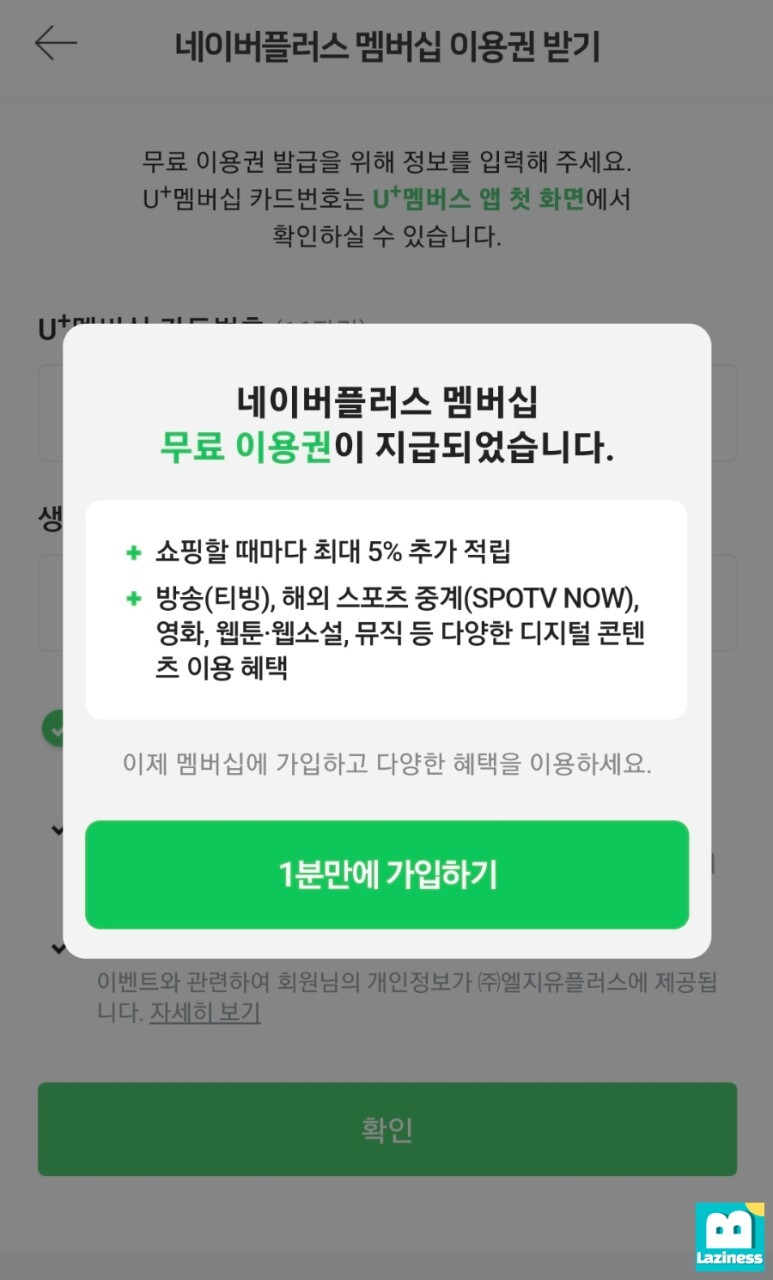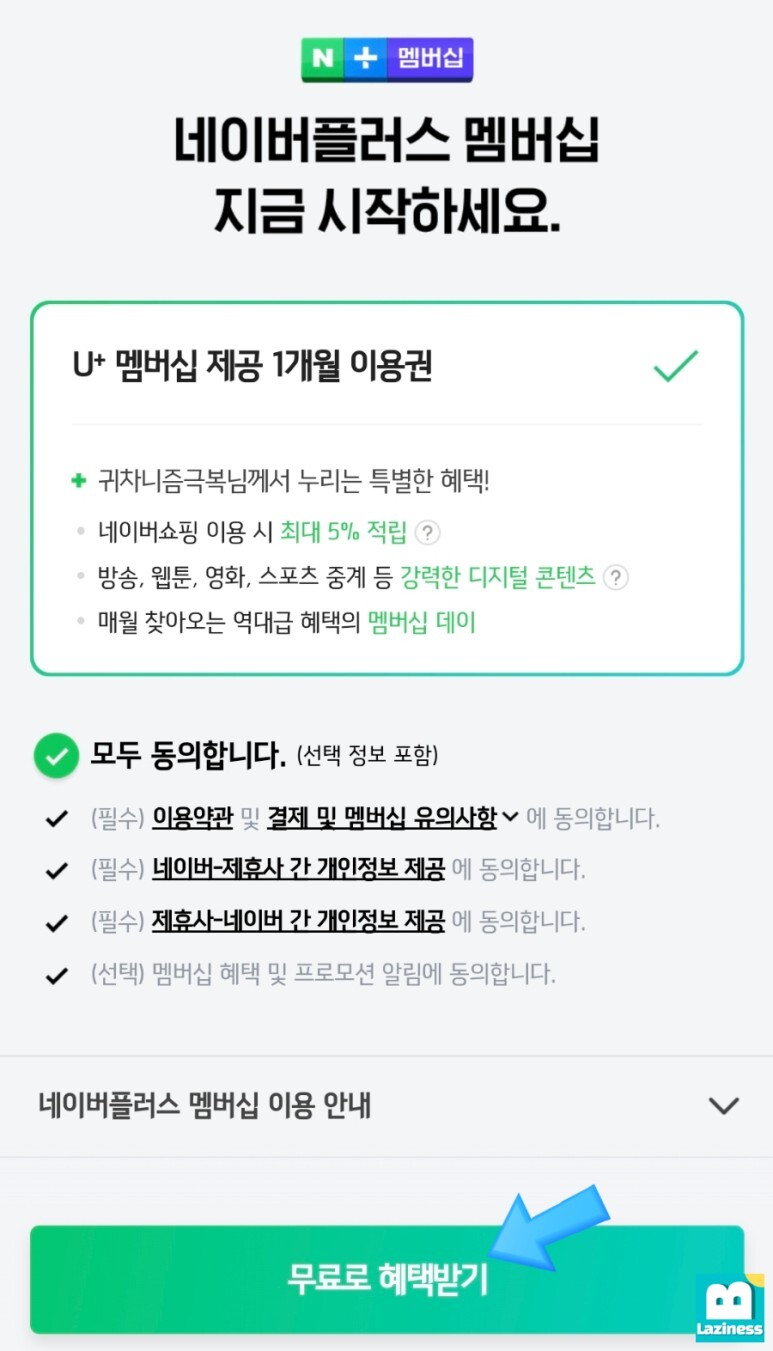 LG유플러스를 사용하고 계시다면 무료로 네이버 플러스 멤버십 이용권을 받아 혜택을 받아보세요!