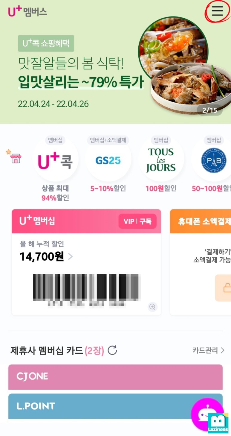 물론 사전에 LG U+ 멤버스 어플리케이션을 설치하고 로그인을 미리 해 두셔야 합니다.