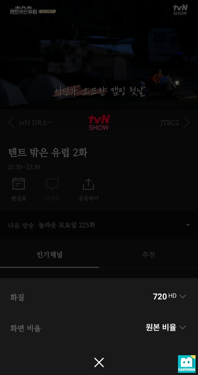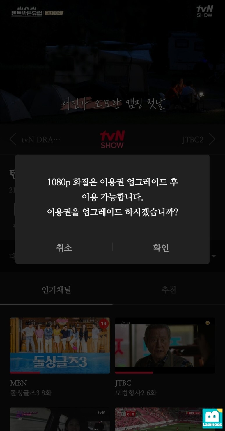그렇게 휴대폰에 설치한 TVING을 들어가면 이제 티빙으로시청을 할 수 있는데요. 위에서도 언급했지만 티빙 베이직 서비스만 가능하기 때문에 해상도는 720P로만 시청할 수 있습니다.