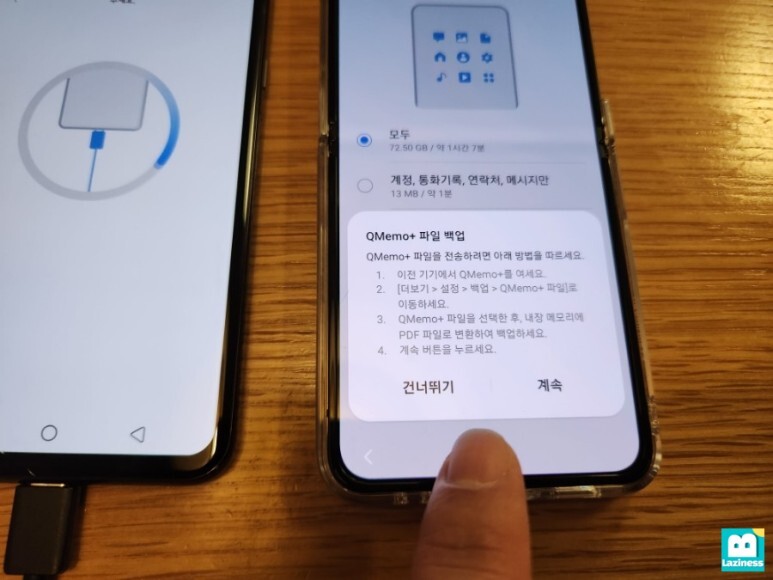 여기서 중요한 부분은, 데이터를 옮기는 동안에 무선충전이 되지 않는 다는 겁니다.