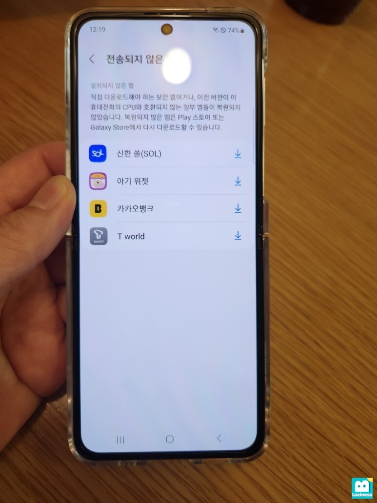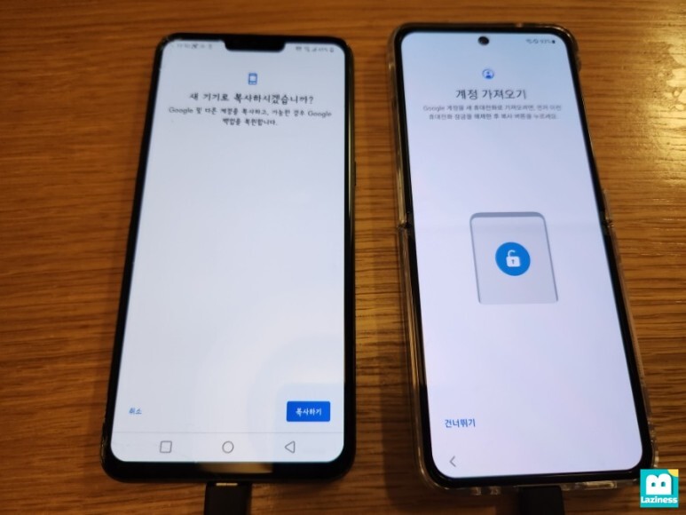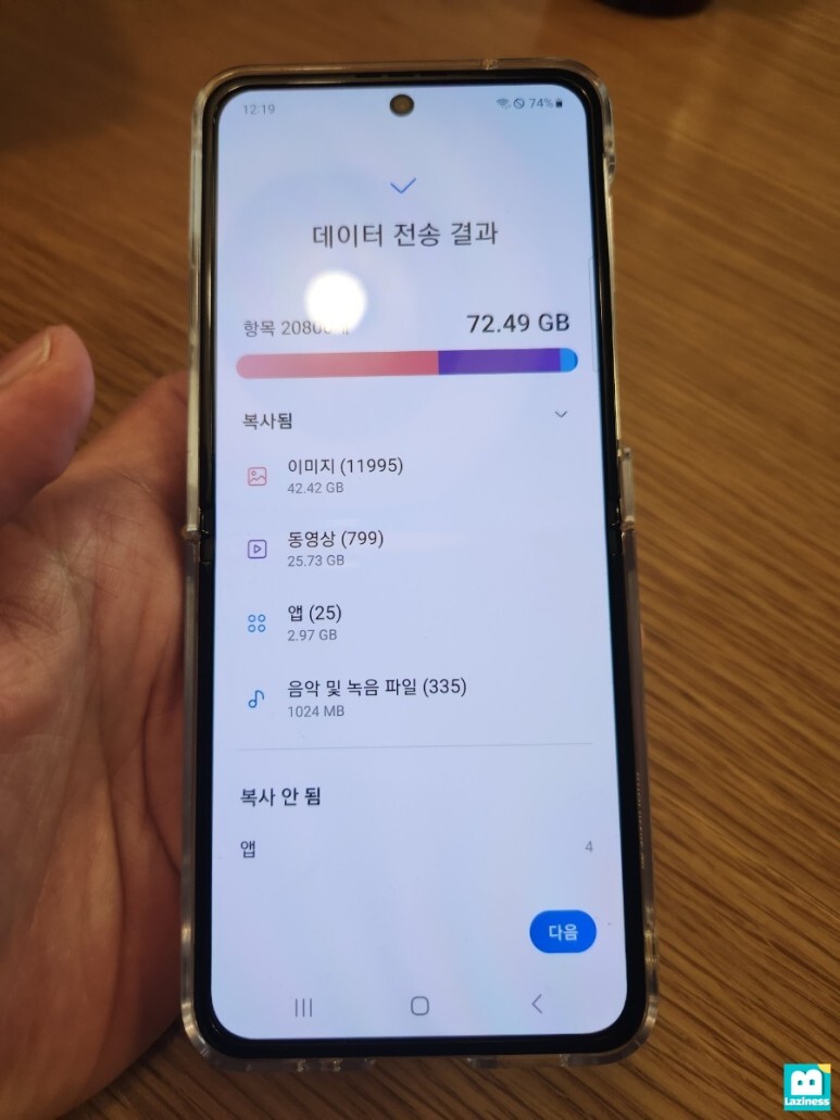 데이터가 옮겨지는 동안에 아무것도 하지 않는 것은 아니구요. 신규 핸드폰인 제트플립4의 환경 설정을 진행합니다.