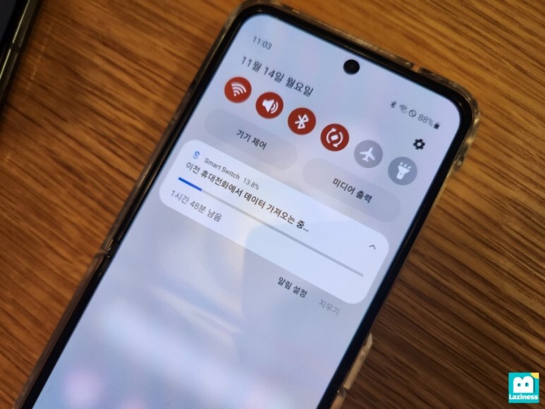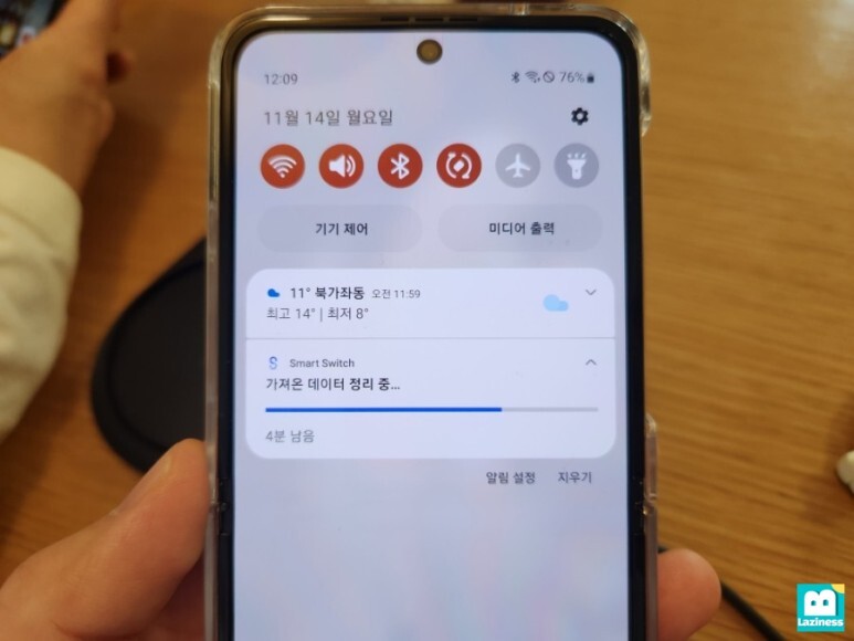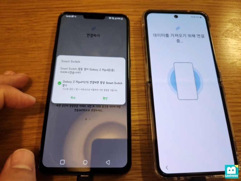 기존의 핸드폰에서 "Smart Switch 앱을 열어 Galaxy Z Flip을 처리하겠습니까?"라고 뜨고요.