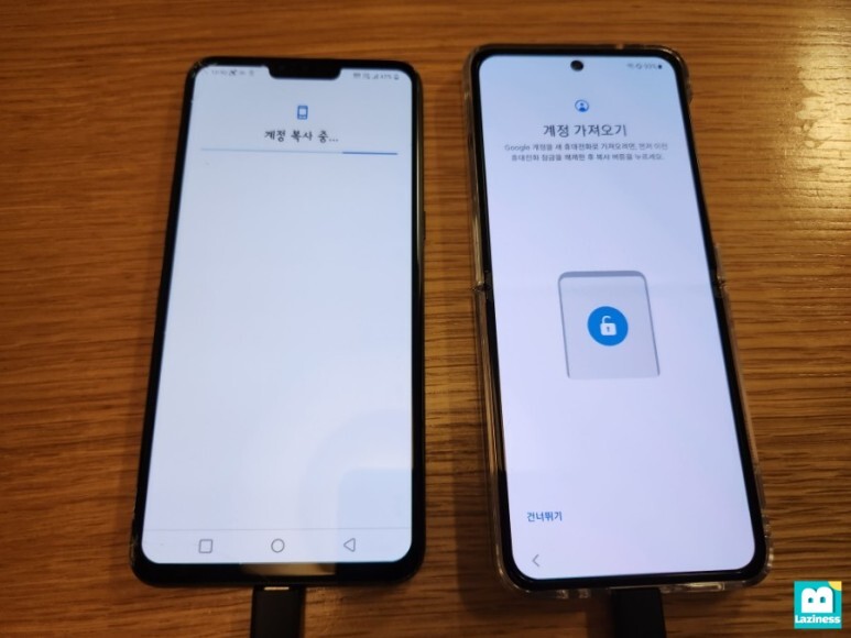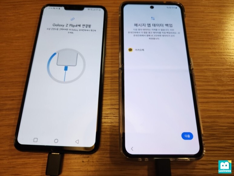 신규 핸드폰인 제트플립4에서는 "가져올 데이터 찾는 중"이라고 메세지가 뜹니다.