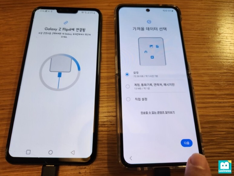 그래서 위 어플리케이션을 활용해 안드로이드 OS를 사용하는, "LG V50"에서 "삼성 Z플립4"로 데이터를 옮기는 과정을 남겨볼게요.