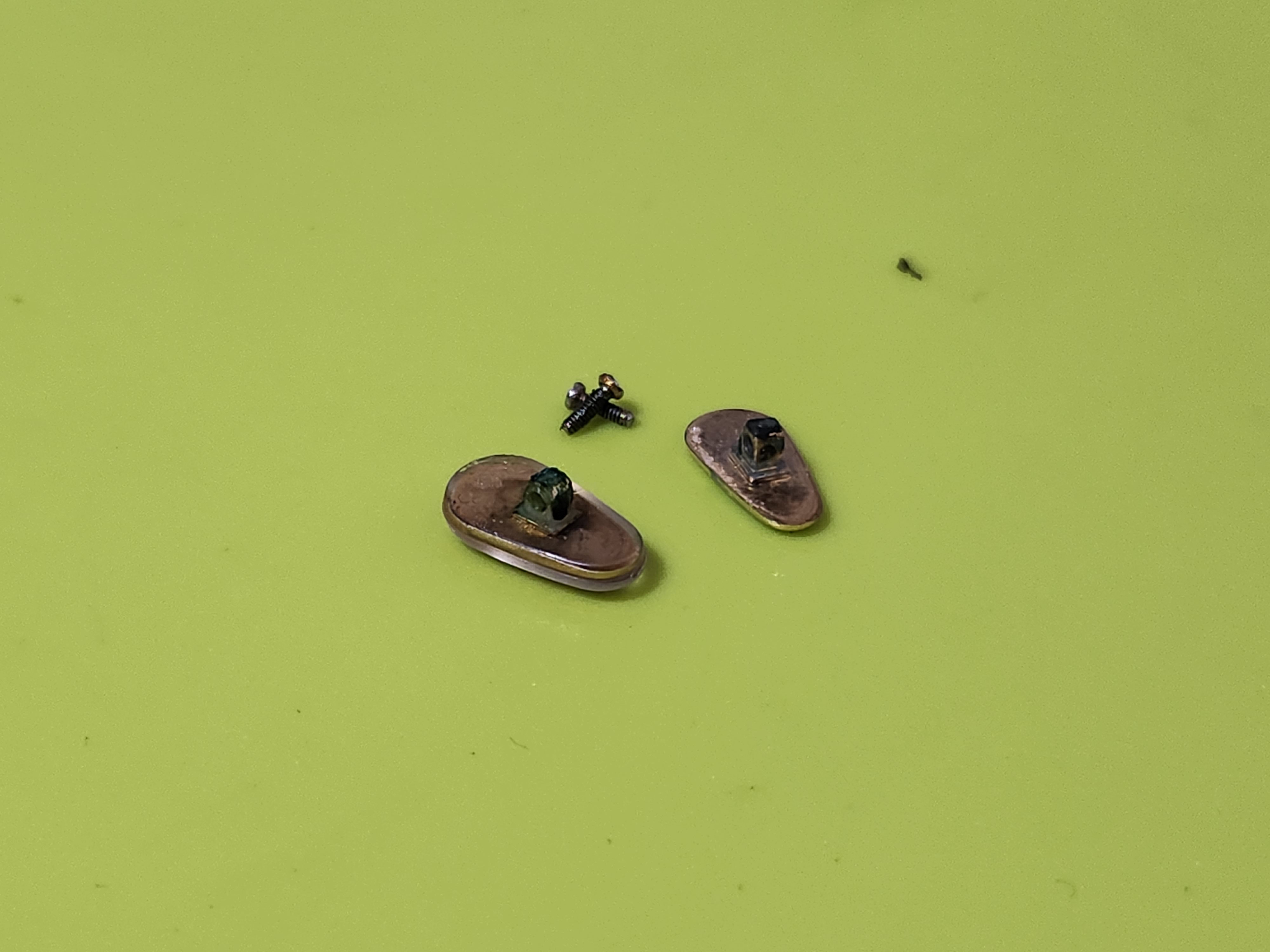 기존 안경에 있언 코받침인데 외부 플라스틱이 벗겨지면서 안쪽의 재질이 나왔고, 도색도 벗겨져서 교체를 해줘야 하는 상황입니다.