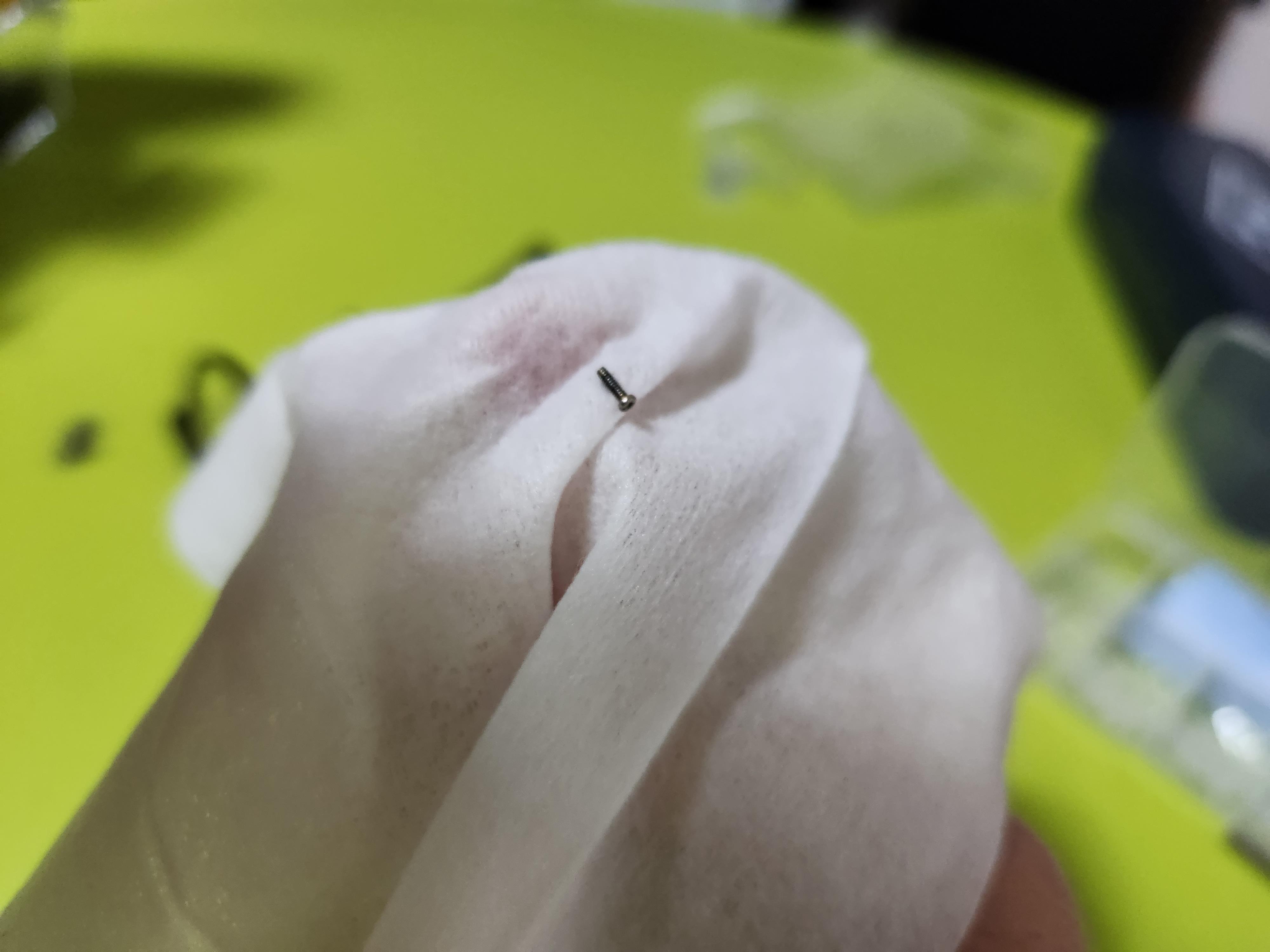 우선 나사를 소독티수로 깨끗하게 닦아내어 줍니다.