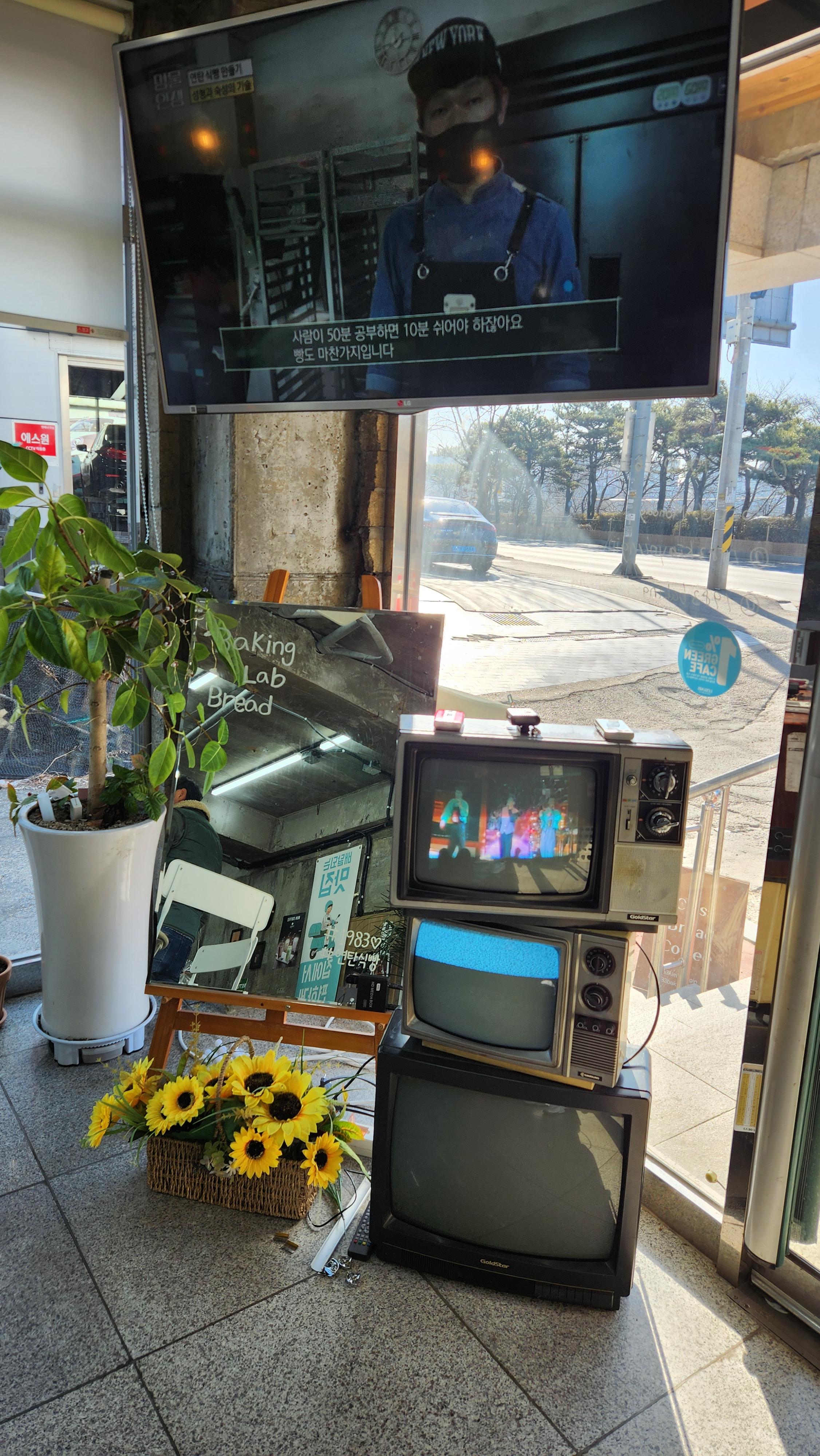 완전 옛날 브라운관 TV가 전시되어 있고 옛날 방송이 나옵니다. 저시절이 새록 새록 기억나게 만드는 인테리어더군요.