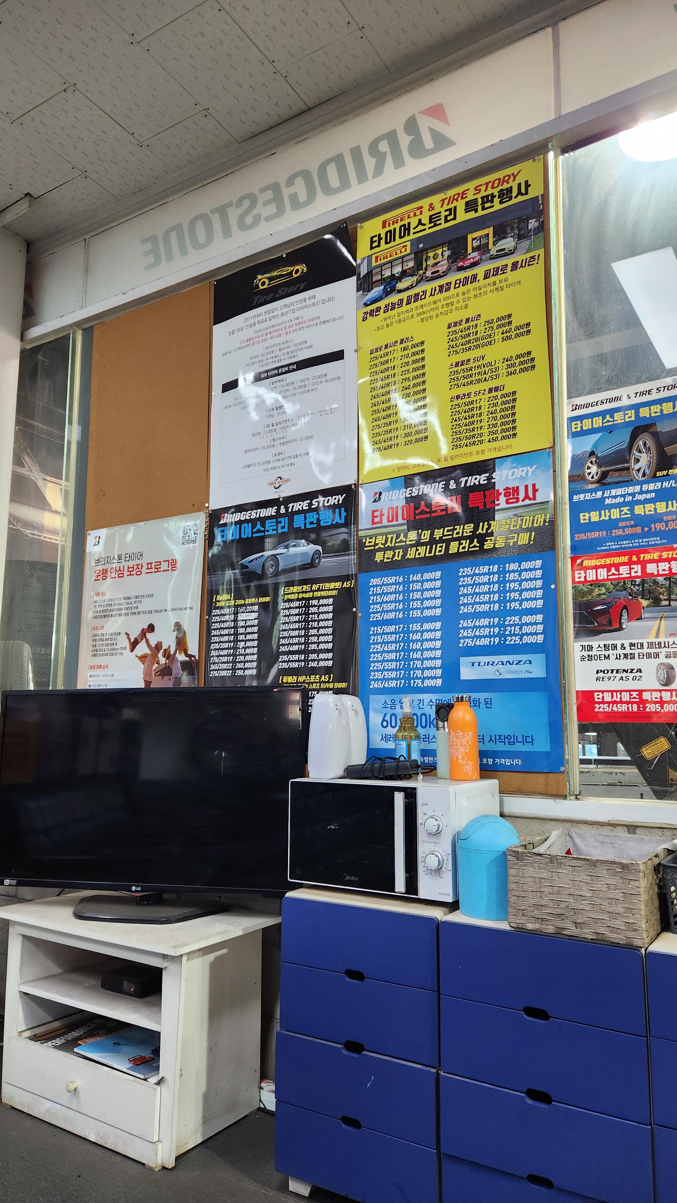 제가 사는 곳이 DMC근처이기 때문에 가까운 타이어 장착점이 있는지 친구가 검색해주었는데요. 차량에 기존 장착되어 있던 타이어도 브릿지스톤이었기 때문에 브릿지 스톤 타이어 장착이 가능한 "타이어 스토리"에 방문해 타이어 교체 작업을 했습니다.