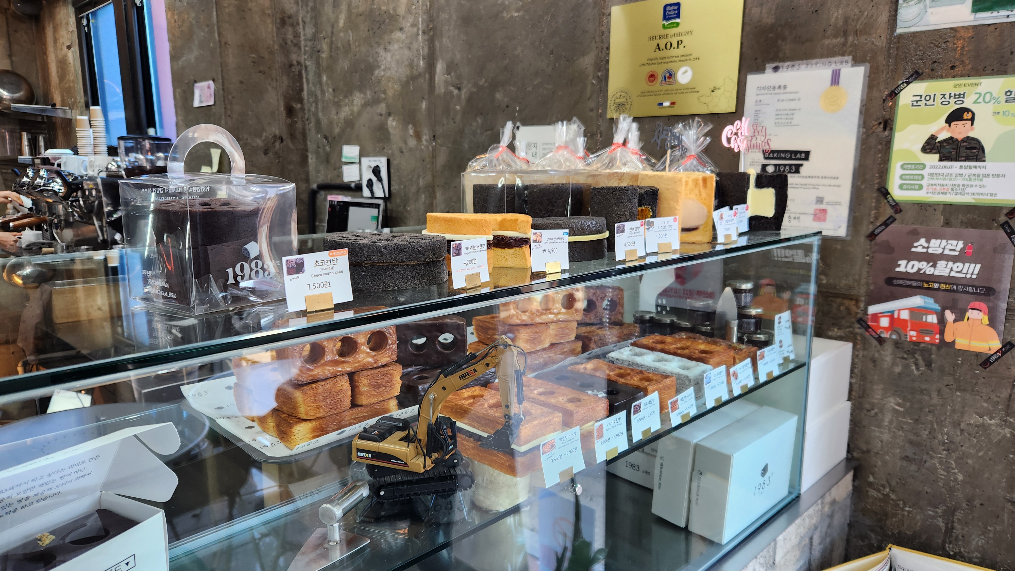 기다리는 시간 동안 옆에 있는 빵집에서 커피를 할인해준다고 갔습니다. 빵 명장이 운영하는 연탄빵 관련된 매장이더군요.