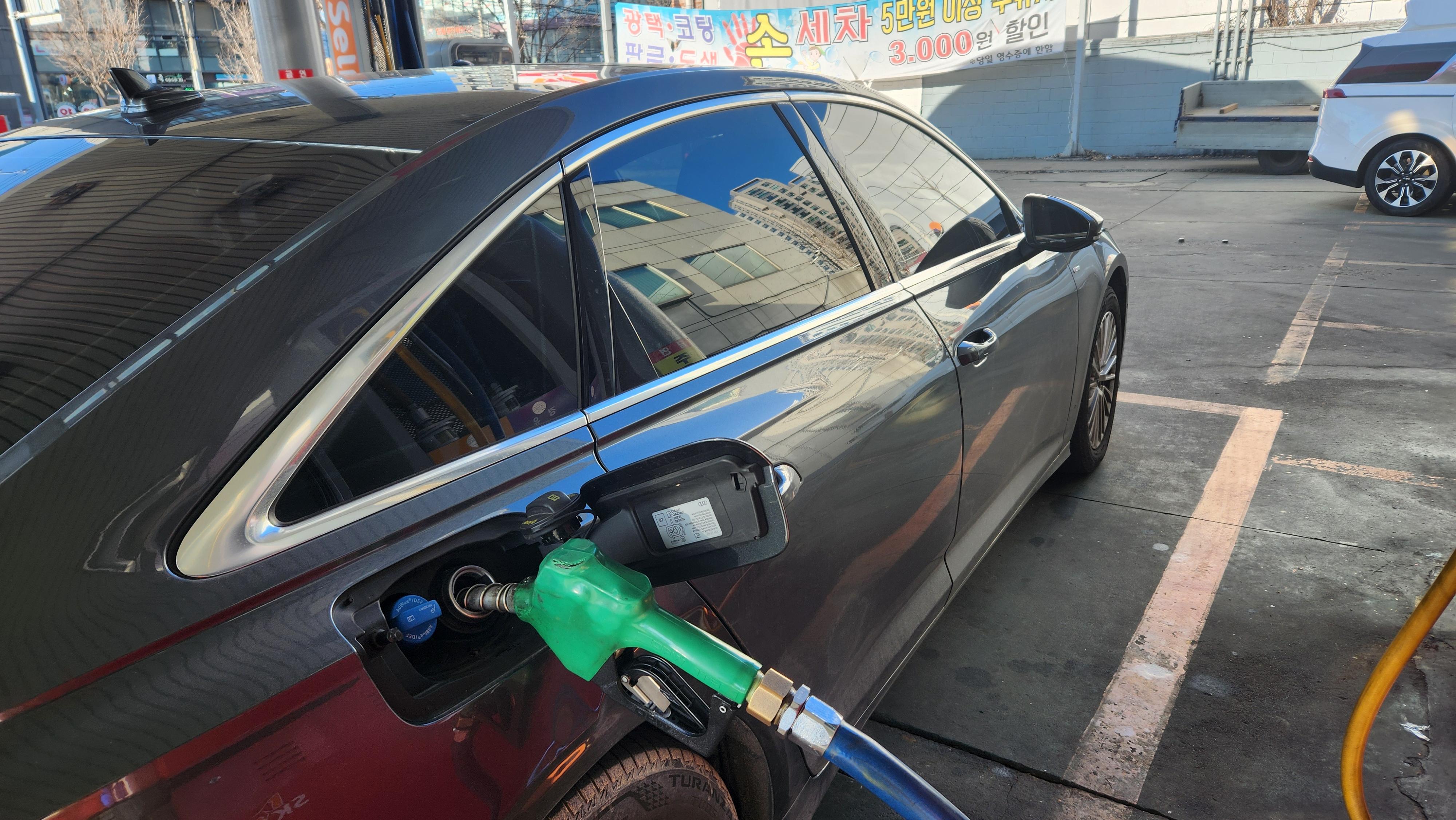 주위에 물어보니 사계절과 올웨더 타이어는 또 다르다고 하더군요. 올웨더가 조금더 비싼거 같던데 저는 썸머타이어의 문제로 사계절용으로 타이어를 교체하기로 했습니다. 일단 먼저 주유를 해주고요.