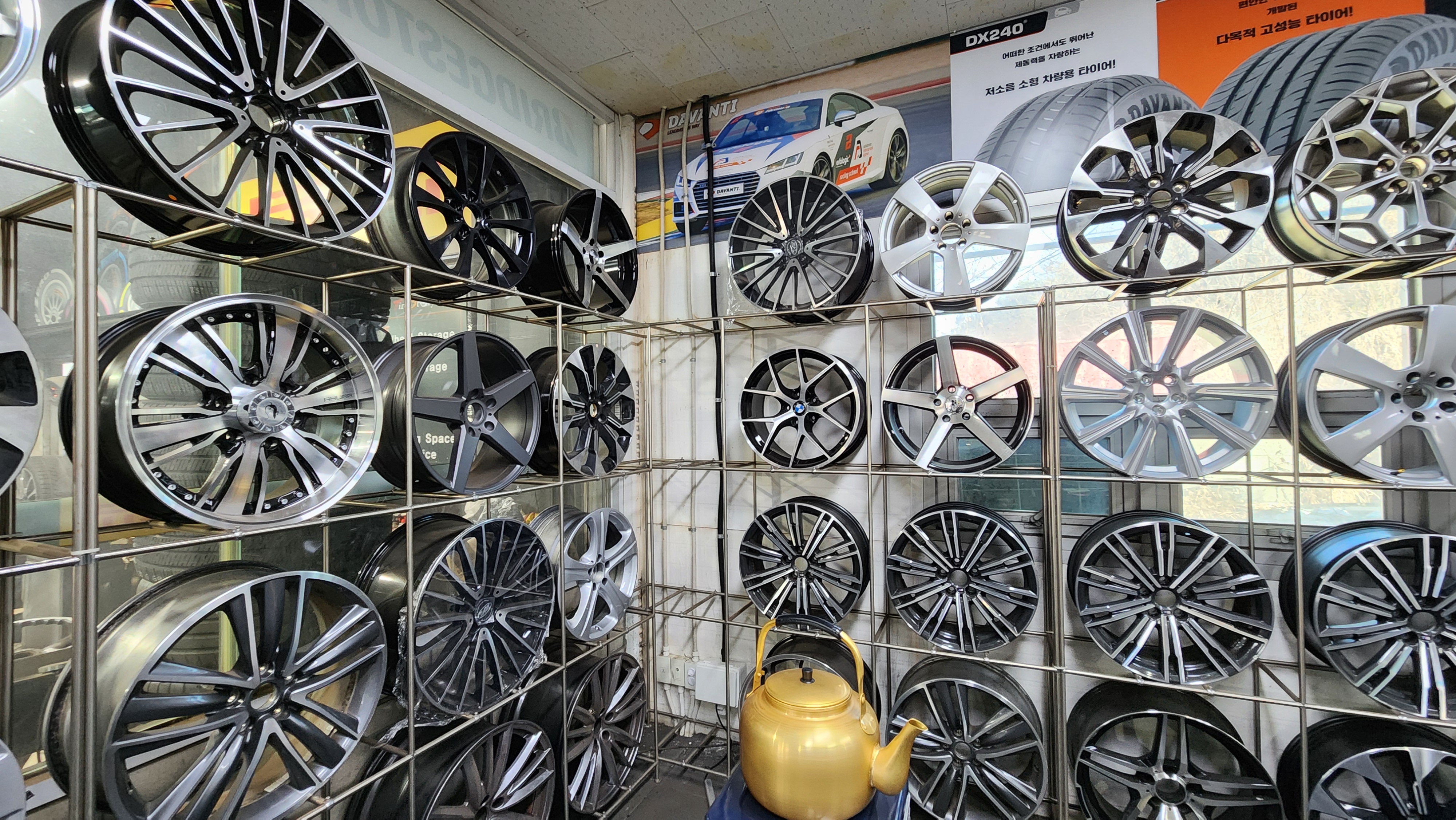 사무실 안에는 멋있는 휠들이 전시가 되어 있지만, 어차피 튜닝의 끝은 순정이니까요... 워낙 세차하기가 힘든 휠이라 한번 바꿔보고 싶긴 합니다.