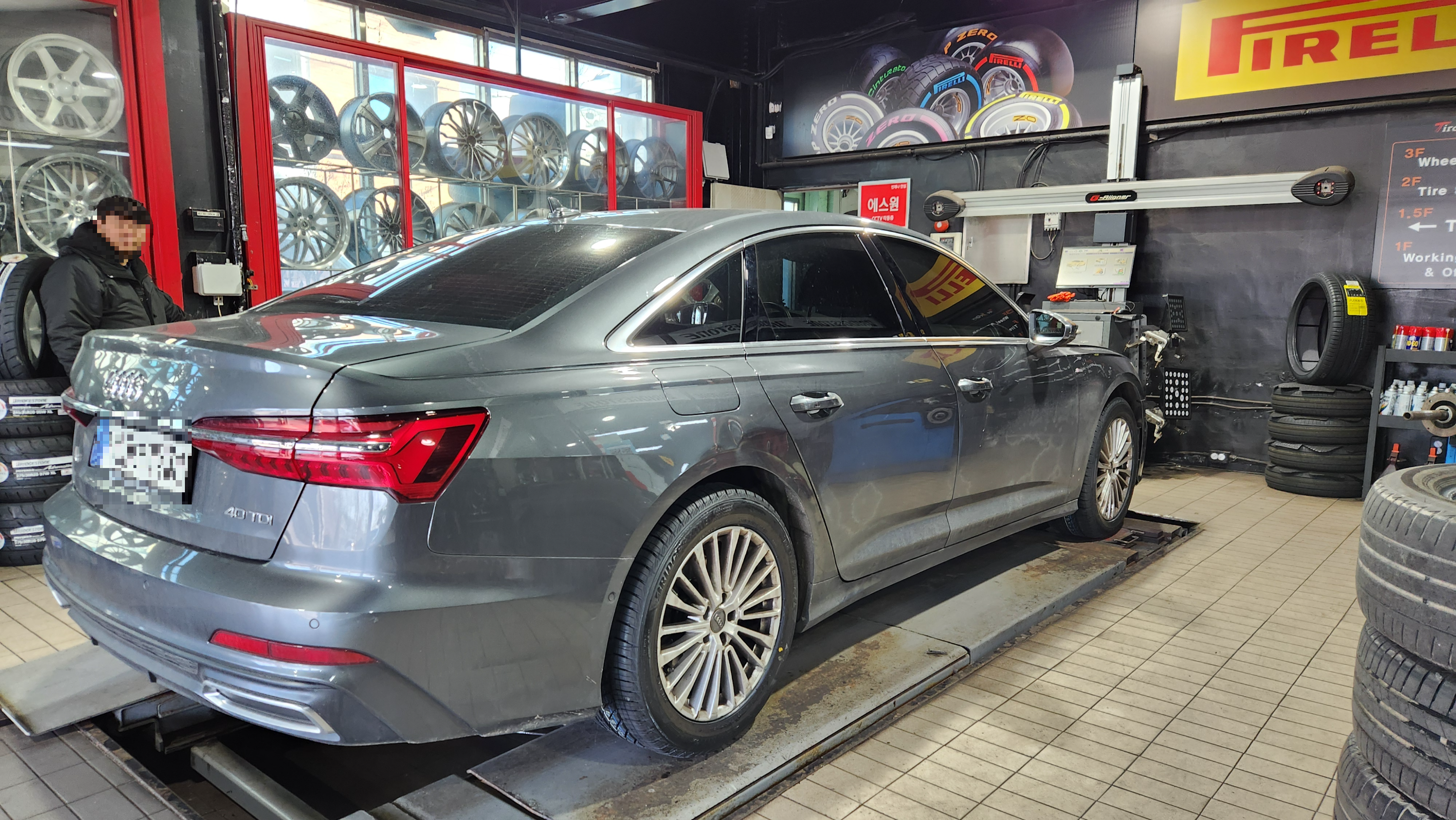기존에 아우디 A6 C8 40 TDI모델에는 235 폭의 썸머 타이어가 장착되어 있었는데요. 여기 사장님이 이야기 하시길 235는 세단에 잘 끼우지 않는 타이어라고 이상하다고 이야기하셨습니다.