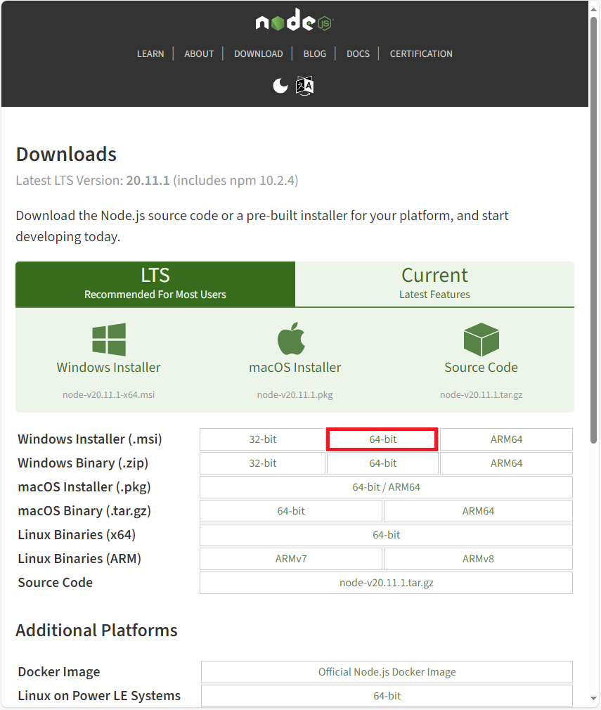 현재 가장 최신의 LTS 버전은 20.11.1 입니다. 커다랗게 표시된 LTS란 Long Term Support 의 약어로 장기 지원 버전이라는 뜻이니 이를 다운로드 받는 것이 좋겠죠?