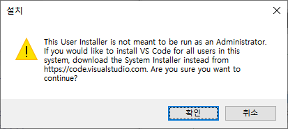 더블클릭하면 아래와 같이 팝업이 뜨는데요. 이 PC를 사용하는 계정이 Administrator가 아니기 때문에 모든 사용자가 사용하려고 하면 별도의 파일을 다운로드 받아서 진행하라고 하니 가볍게 "확인"을 눌러 진행합니다.