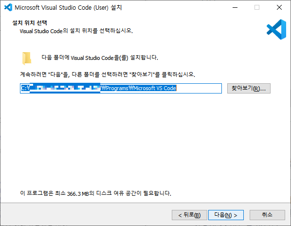 설치 경로는 사용자 계정 아래에 경로로 설정이 되더군요. 아마도 Administrator 권한이면 좀 다르지 않을까 싶지만 어쨋든 기본적으로 지정된 경로를 활용해야 추후에 발생하는 문제에 대해 해결하기가 쉬울겁니다.