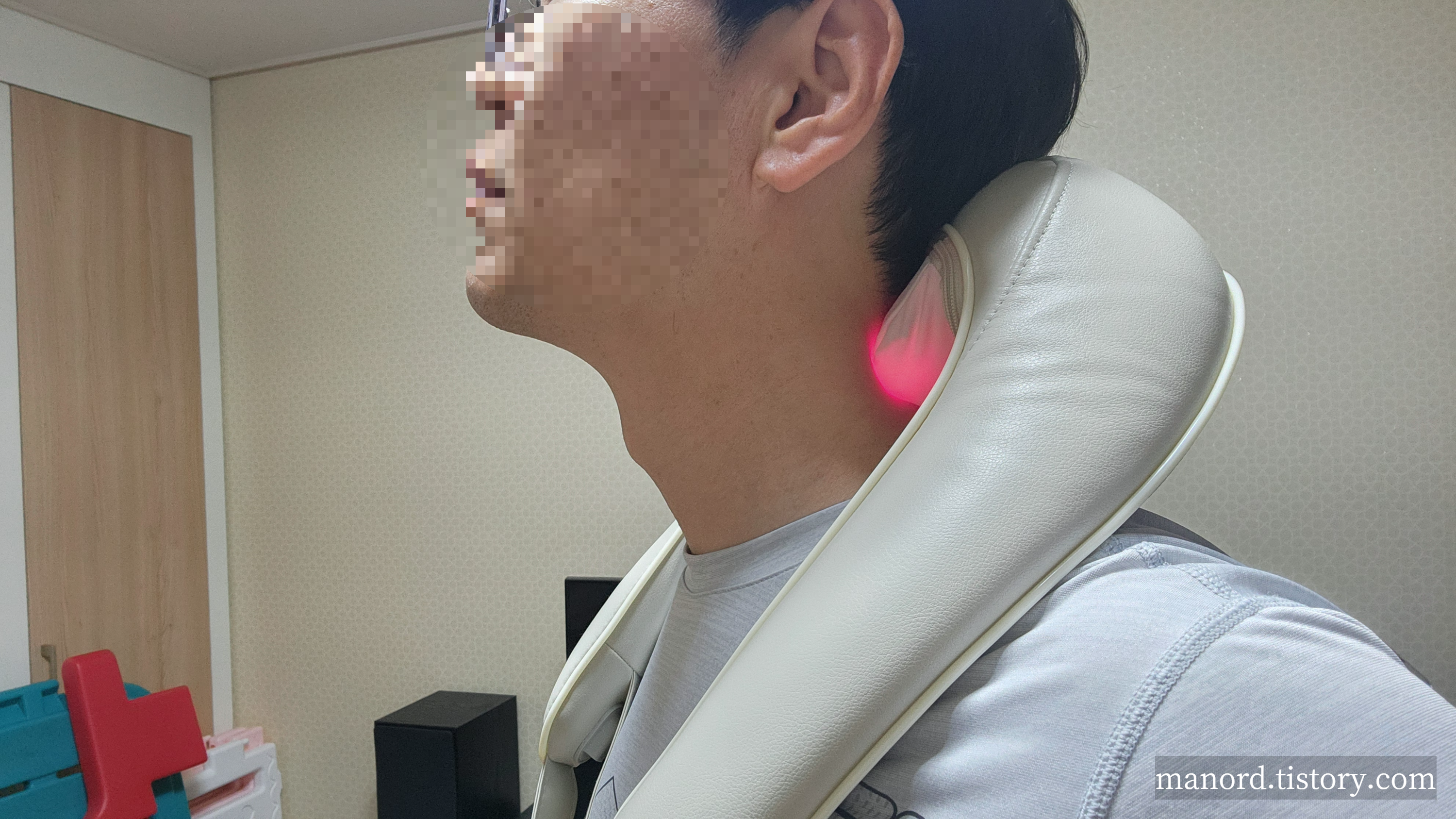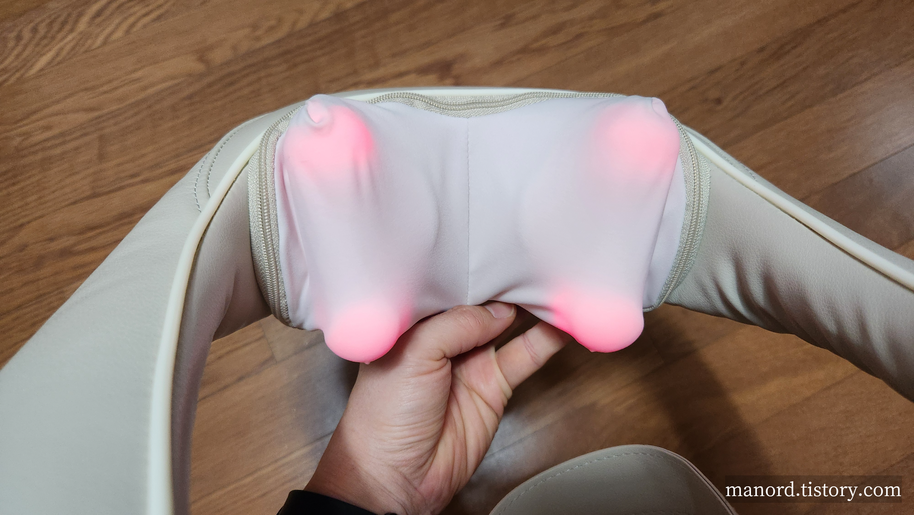 사진으로 마사지 하는 순간을 남겨봤는데 빨간색 불이 들어오니 뭔가 더 따뜻하고 안마가 잘되는 느낌이랄까?