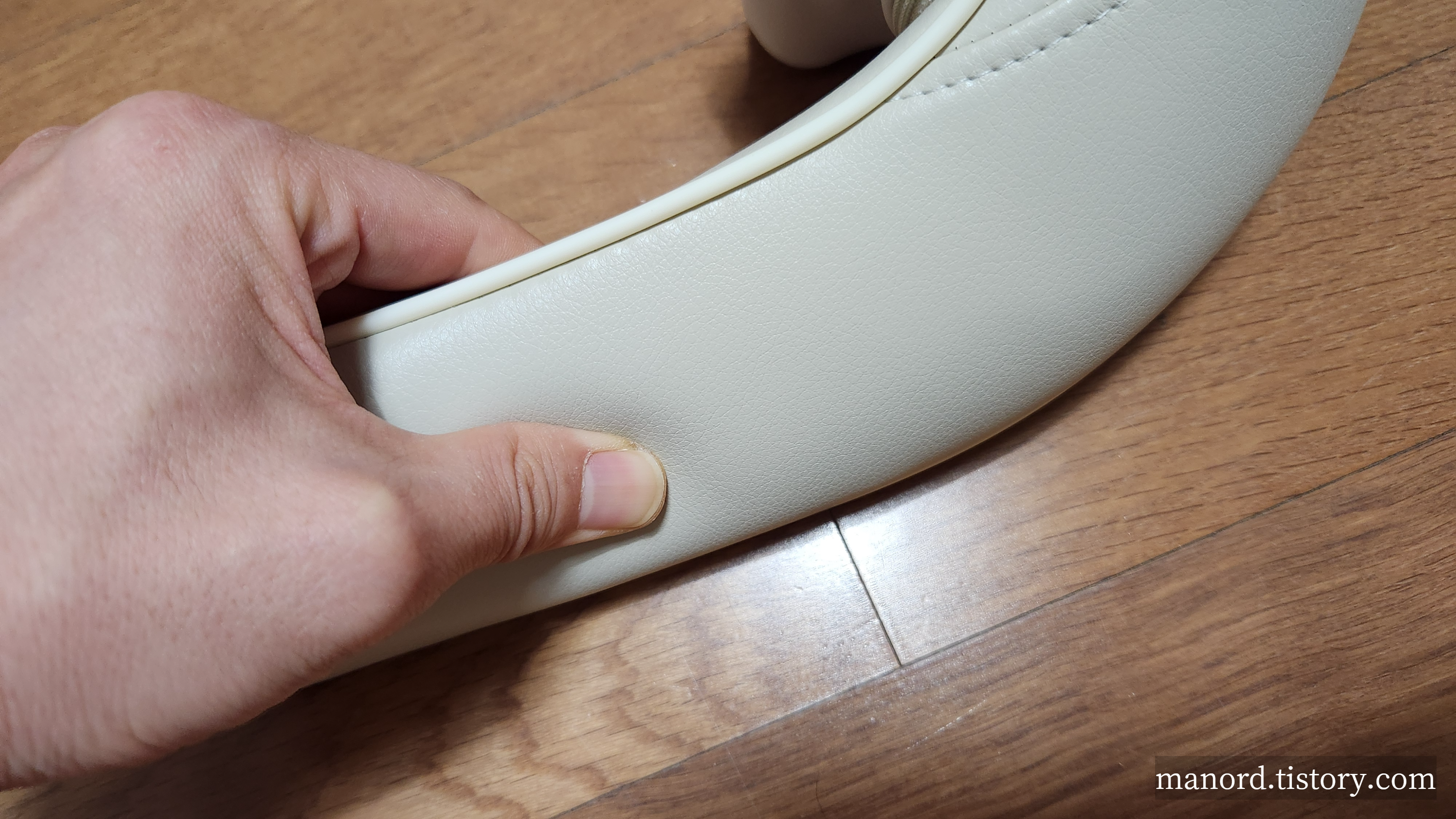 양쪽으로 내려오는 부분에는 안쪽에 보강재가 들어가 있어서 기본적인 형태를 유지하고요. 만져보면 폭신 폭신 합니다.