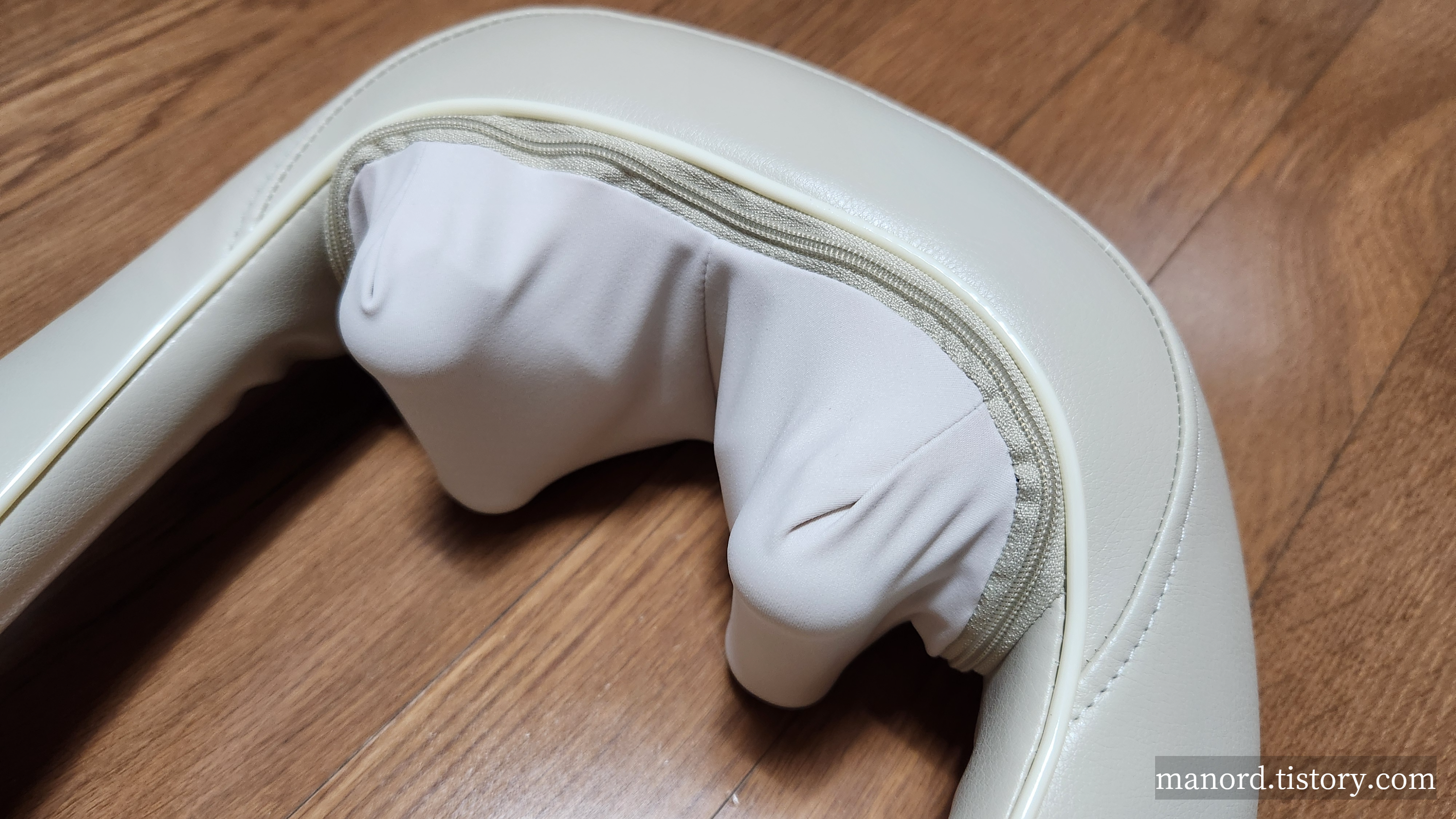 마사지를 해주는 볼헤드는 아래와 같이 지퍼로 분리되어 세척이 가능한 하얀색 천으로 되어있습니다.