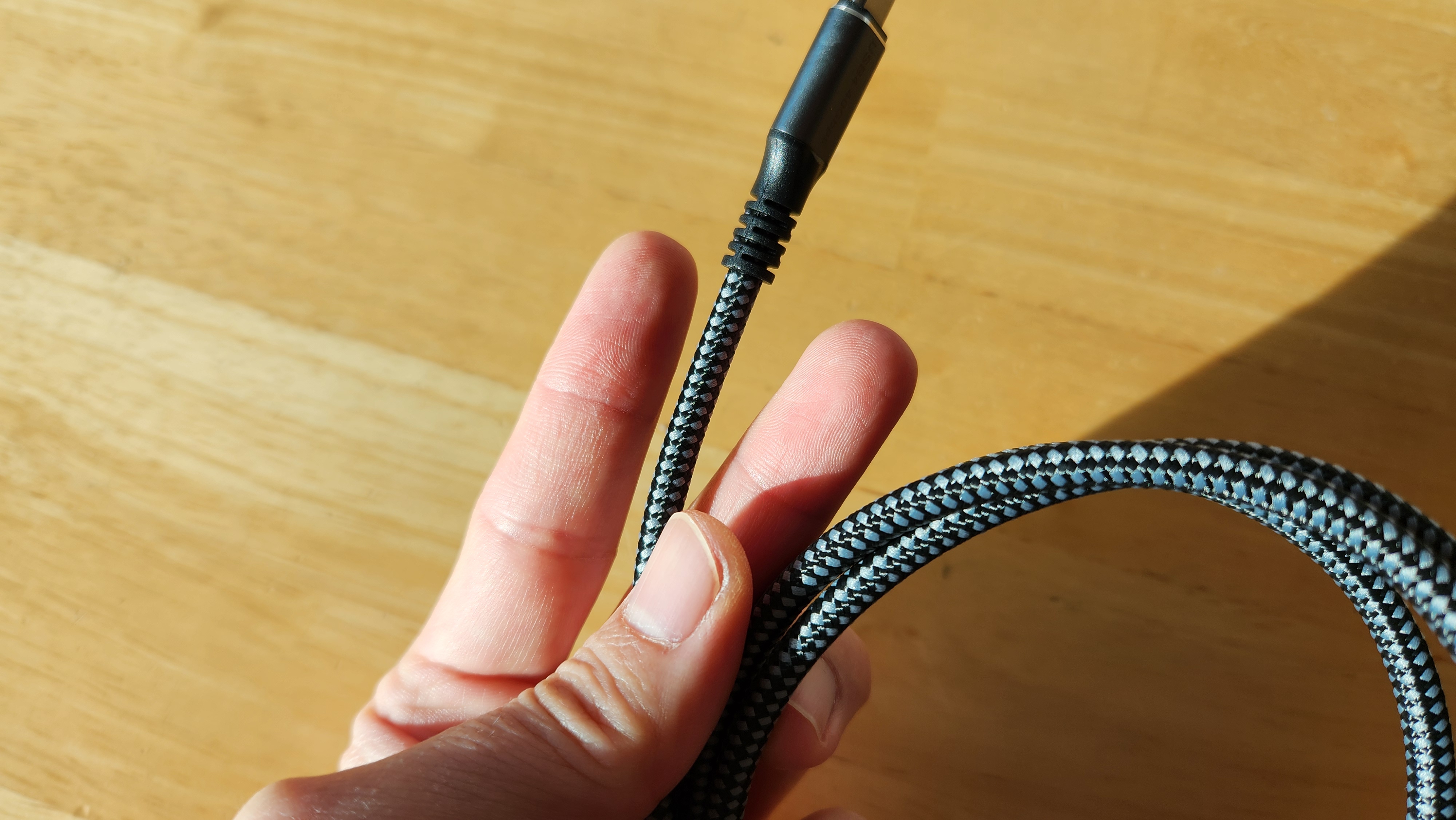 많은 기능을 지원해서 케이블도 상당히 두껍고 패브릭 소재로 이루어져 있습니다. 손가락이랑 비교해봤는데 상당히 튼튼한 모습을 알수가 있죠.