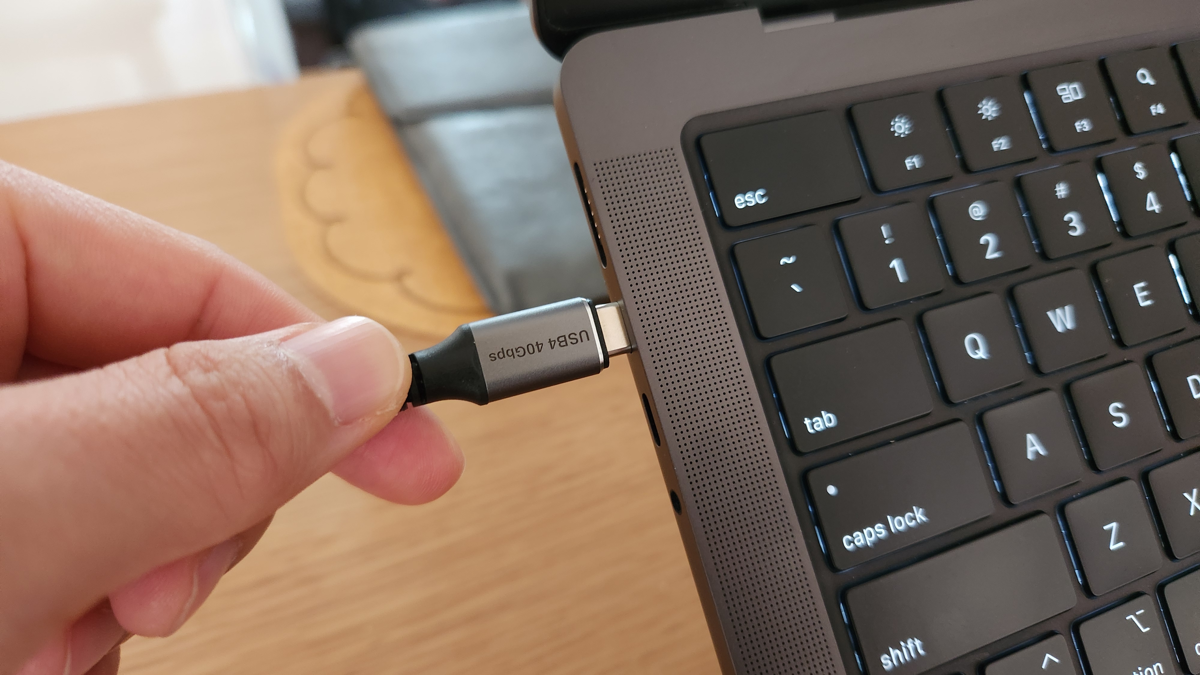 USB c to c타입이라 아래와 같이 플러그가 생겼구요. 이 안쪽에 칩셋이 들어 있어 USB4 / 썬더볼트4 / 파워 / 고화질 전송등을 지원합니다.