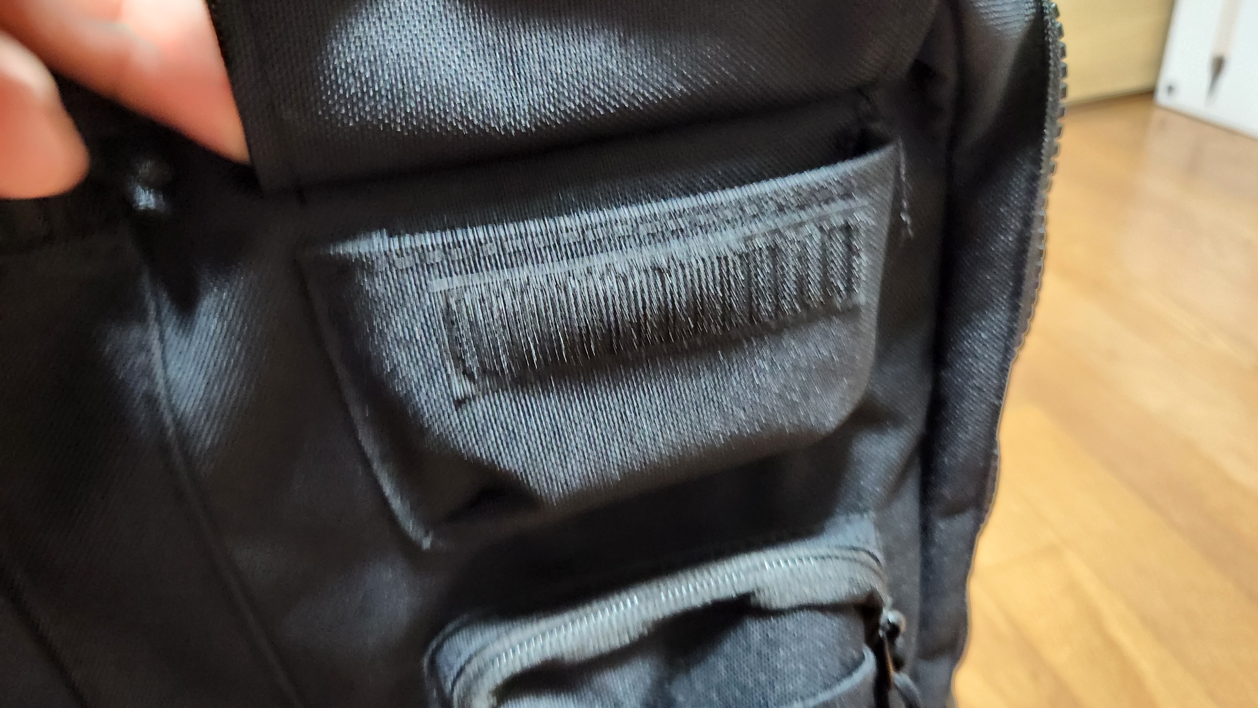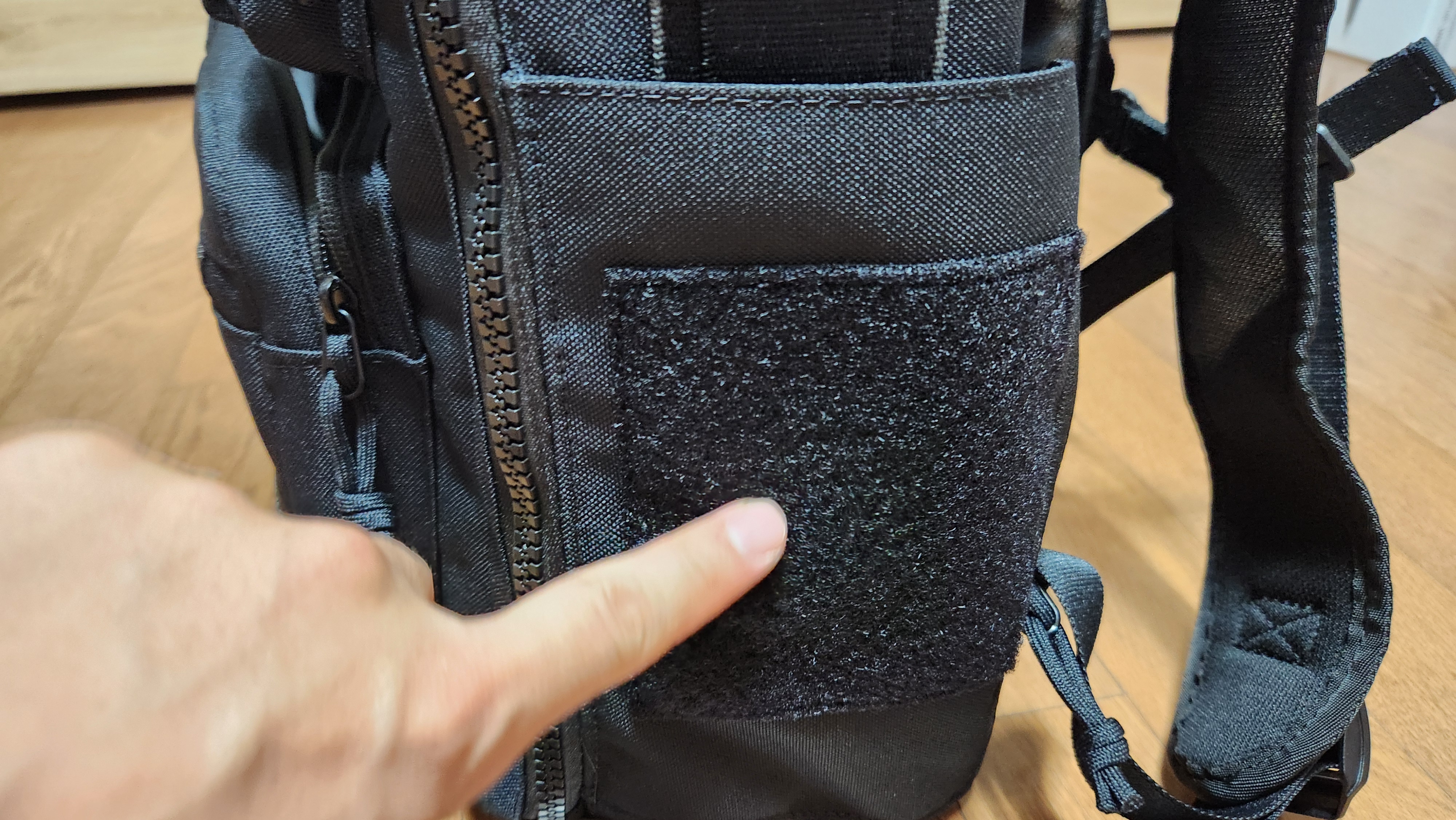 한쪽 하단에는 아래와 같이 벨크로로 되어 있는 와펜을 부착할 수 있도록 처리 되어있고요.