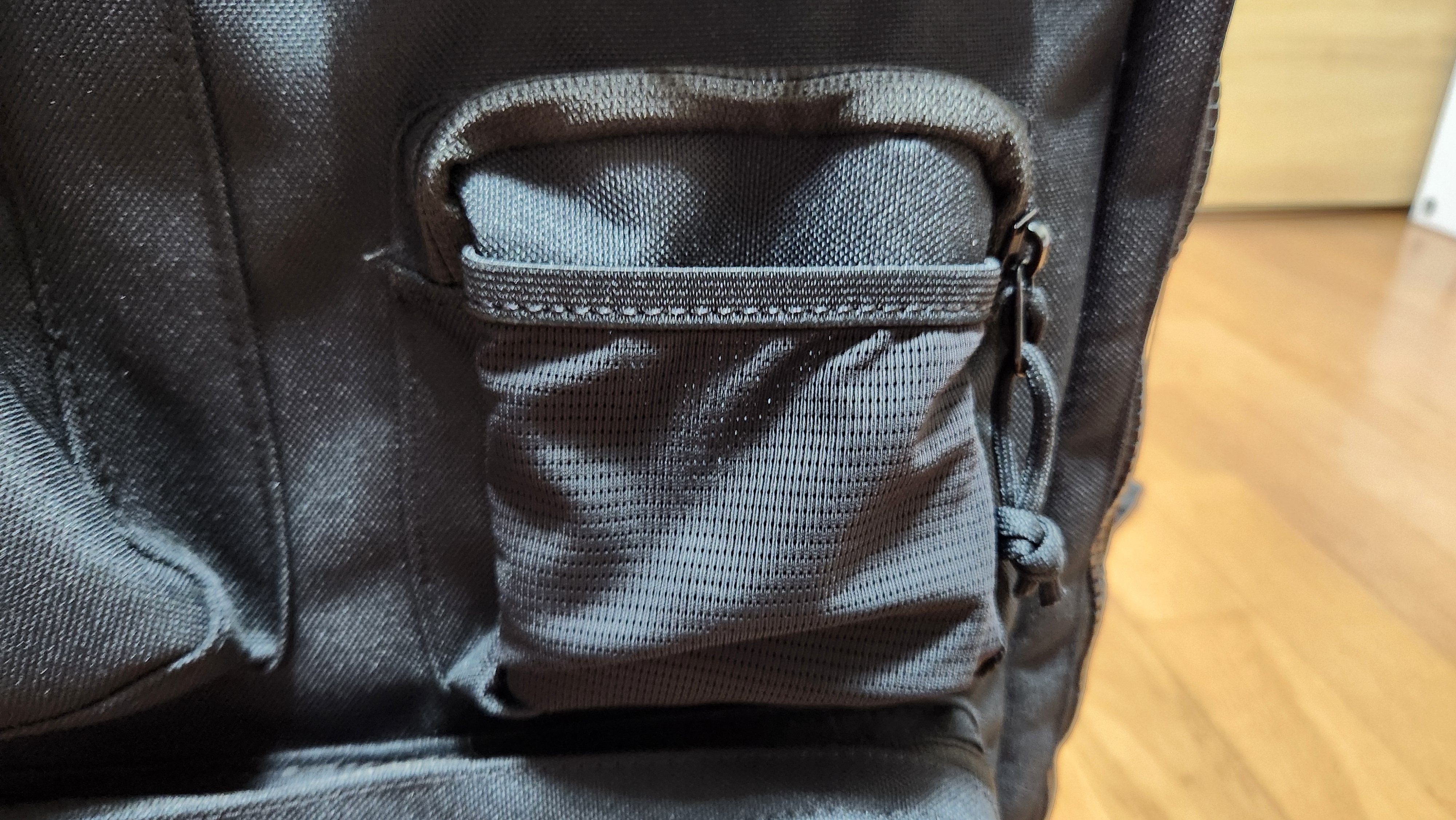 그다음 정면 중간에도 작은 주머니가 있는데요. 아래와 같이 신축성있는 재질로 한번 더 씌여져 있어 작고 올록볼록한 용도의 물건을 수납하기 좋습니다.