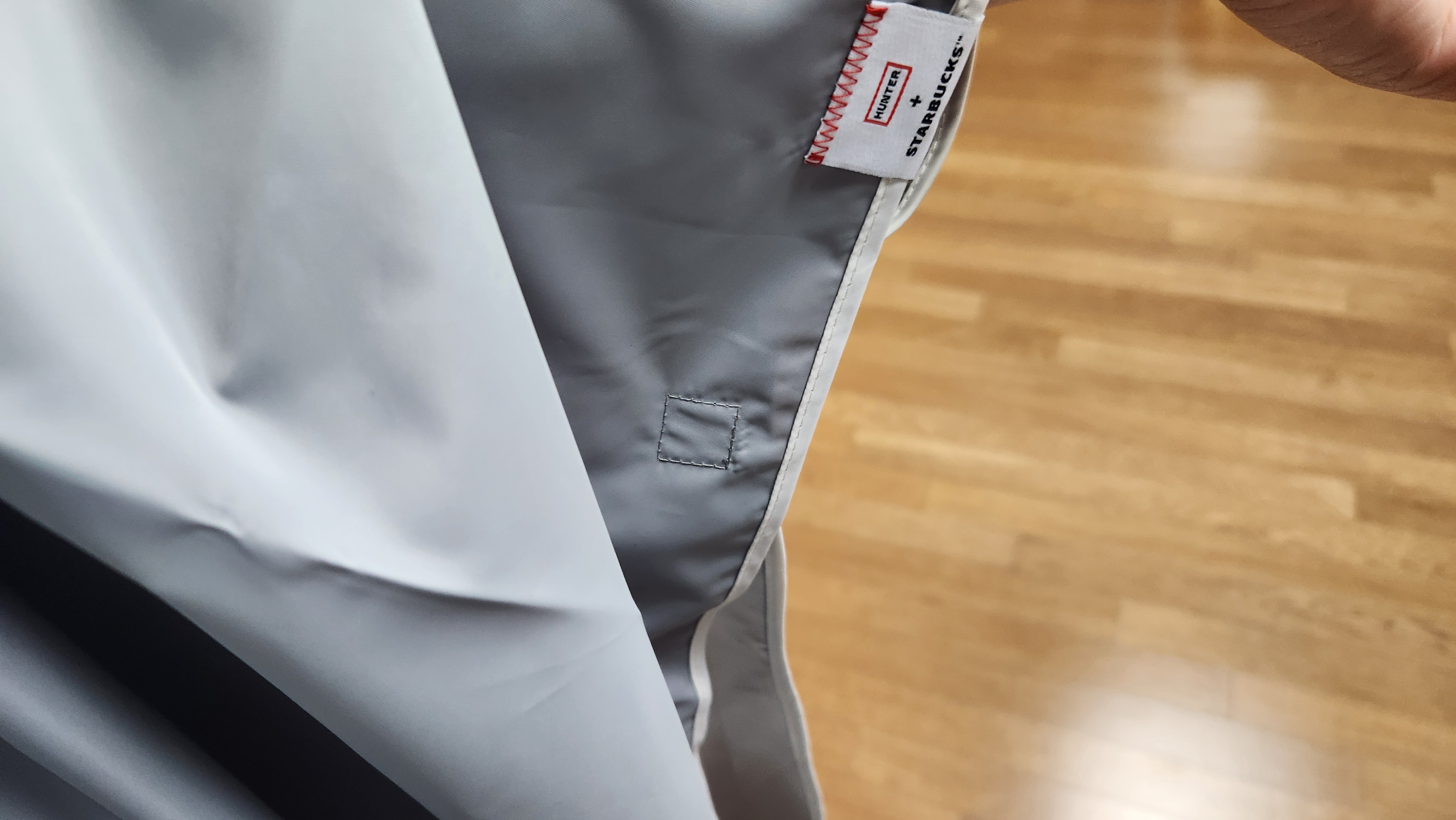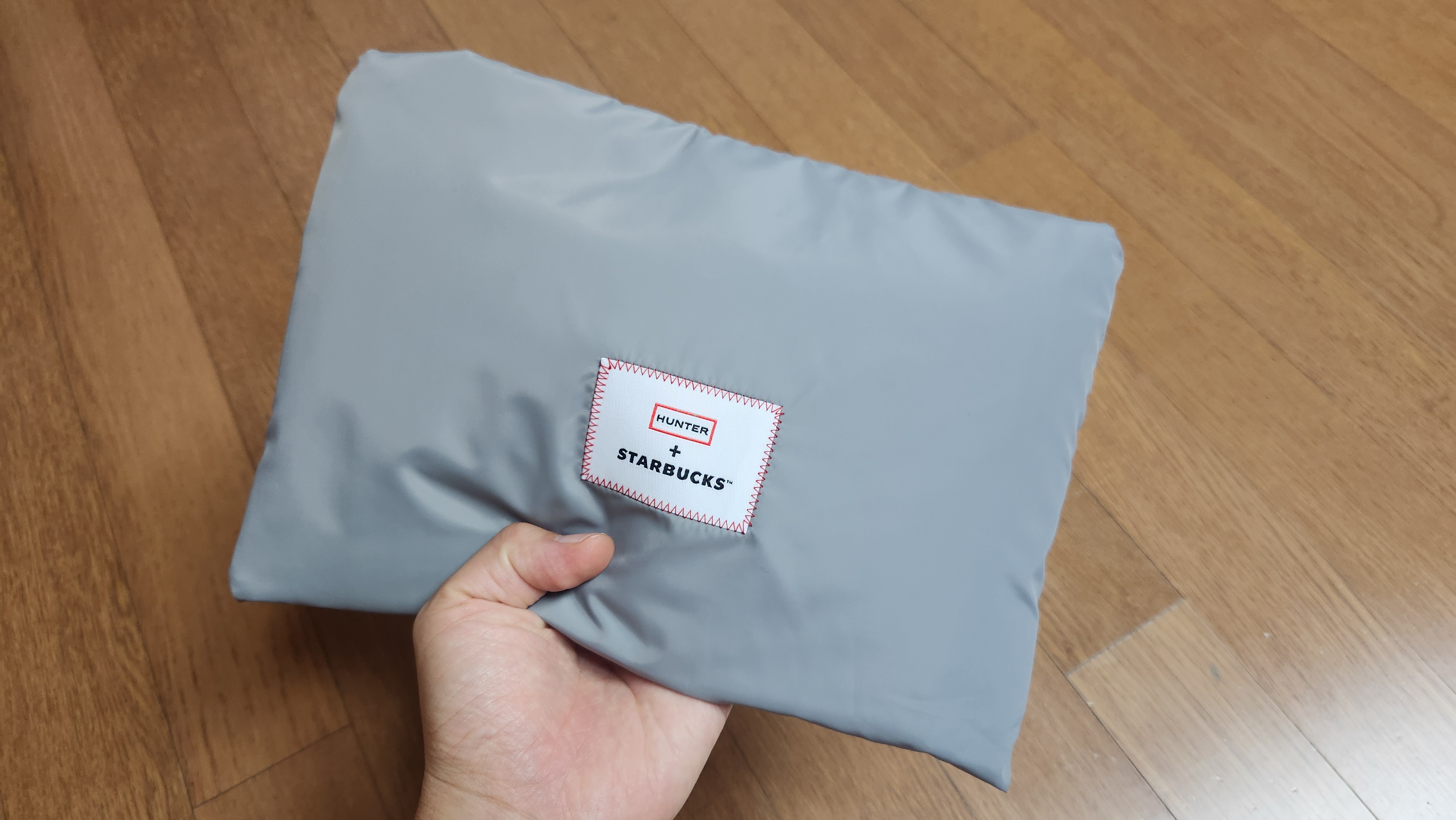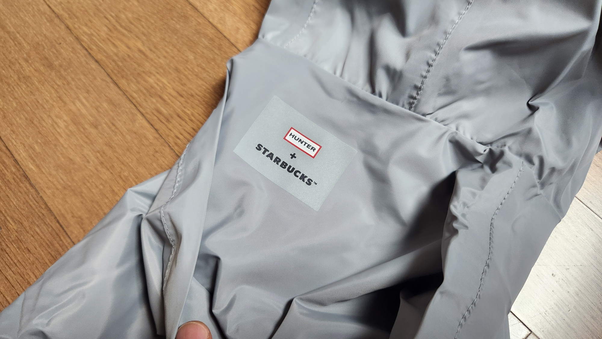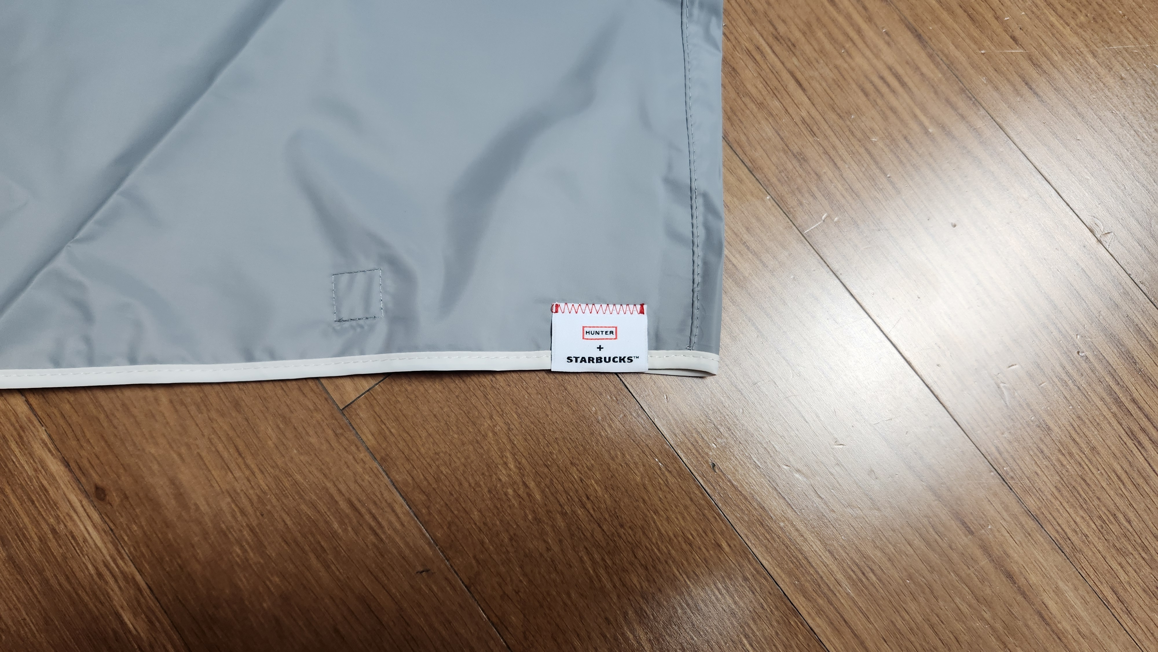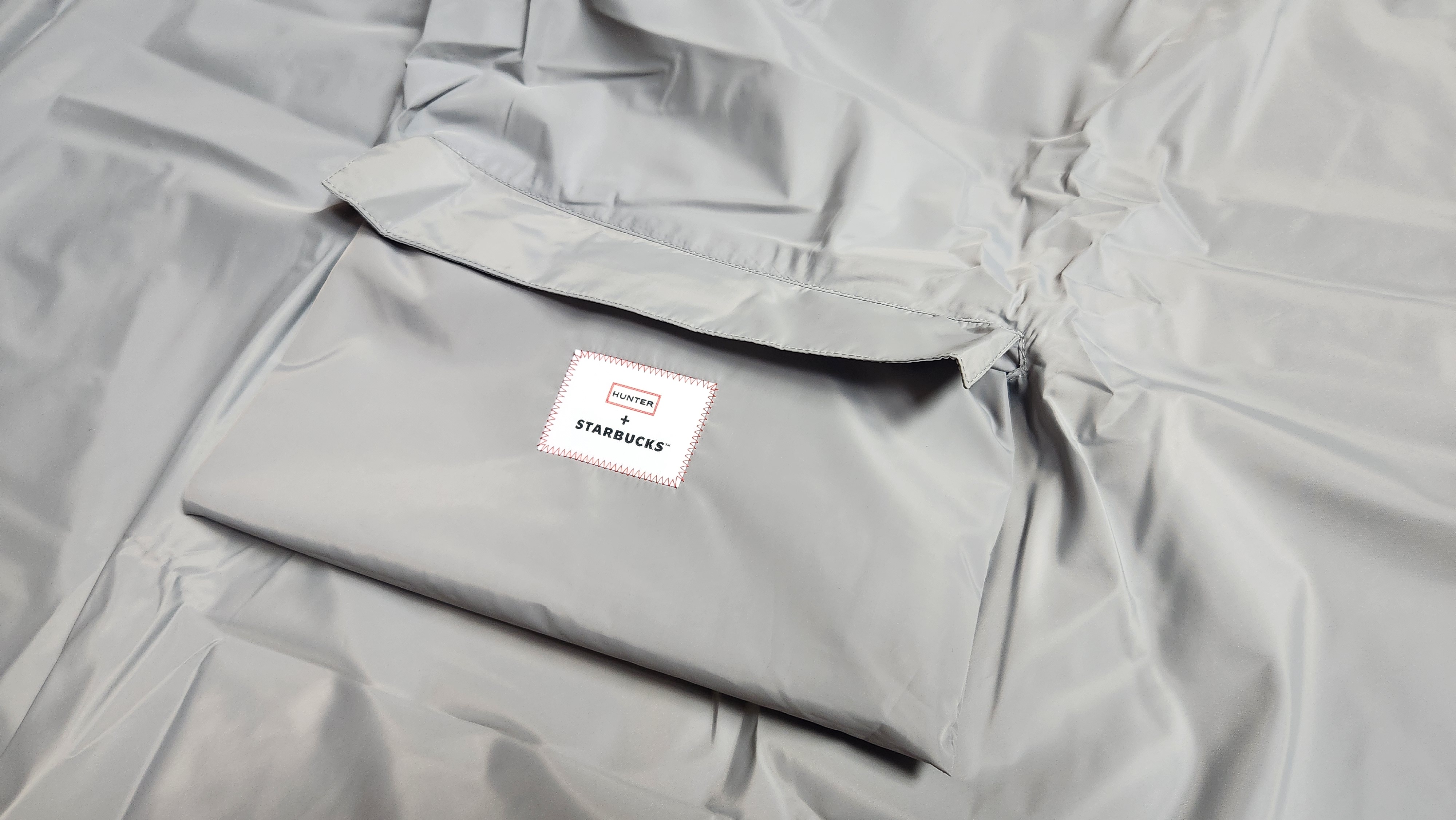 그렇게 파우치 안에 들어간 판초우의를 살포시 펼쳐주면 아래와 같은 스타벅스와 헌터의 로고가 나타납니다.