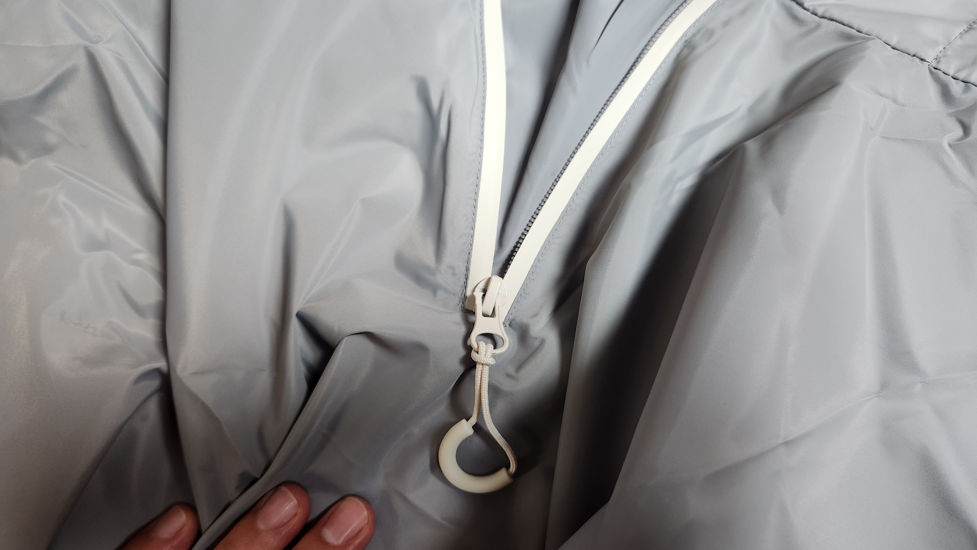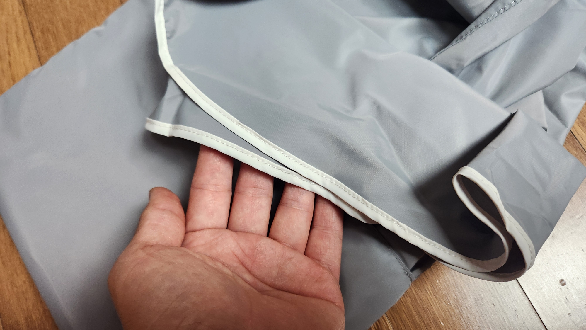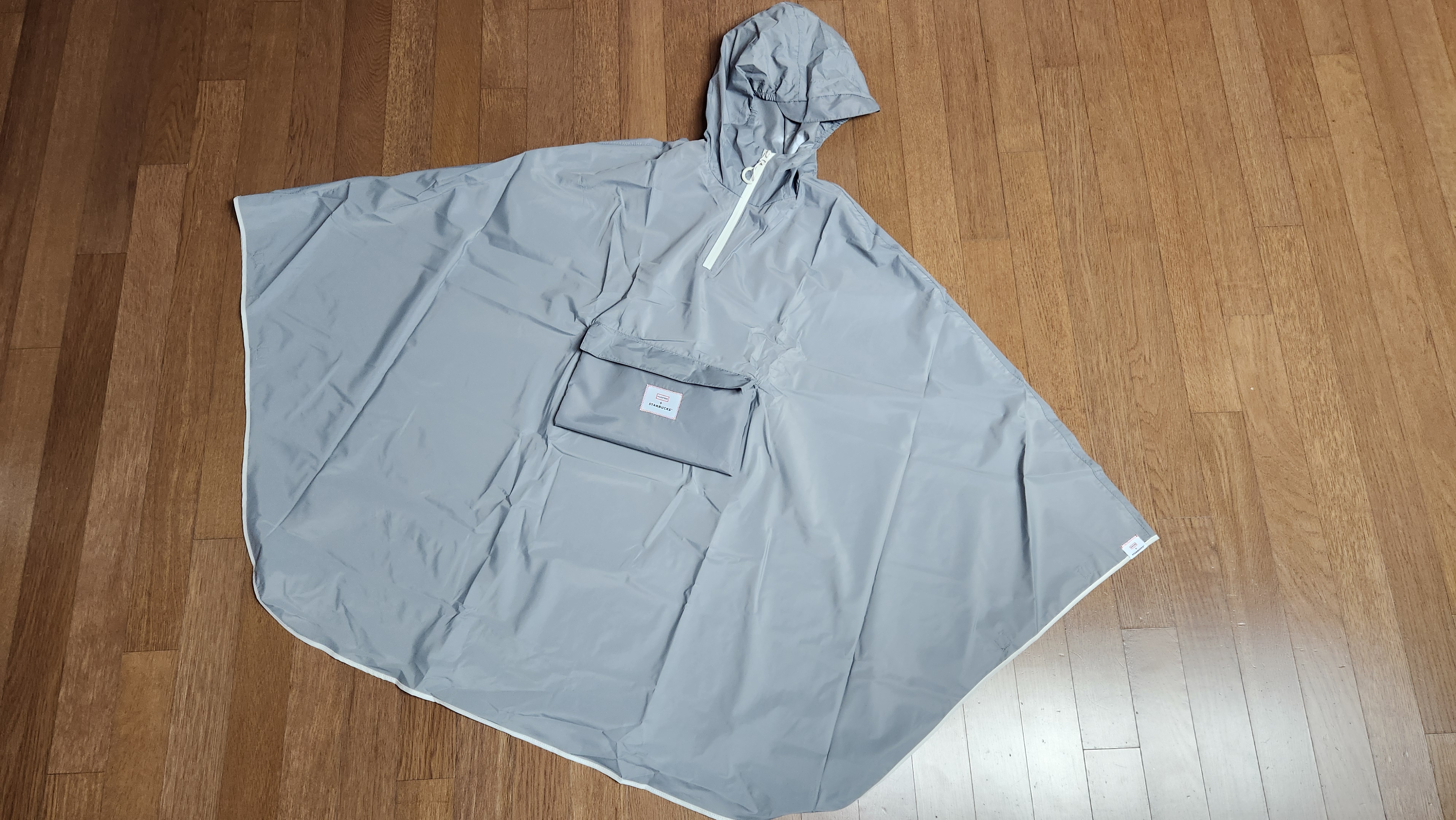 파우치에서 모든 부분을 꺼내면 파우치는 우의의 주머니로 변신합니다. 색상이 그래이지만 어두운 색상이 아니라 고급스러운 밝은 색상이라 실생활에 사용해도 좋습니다.