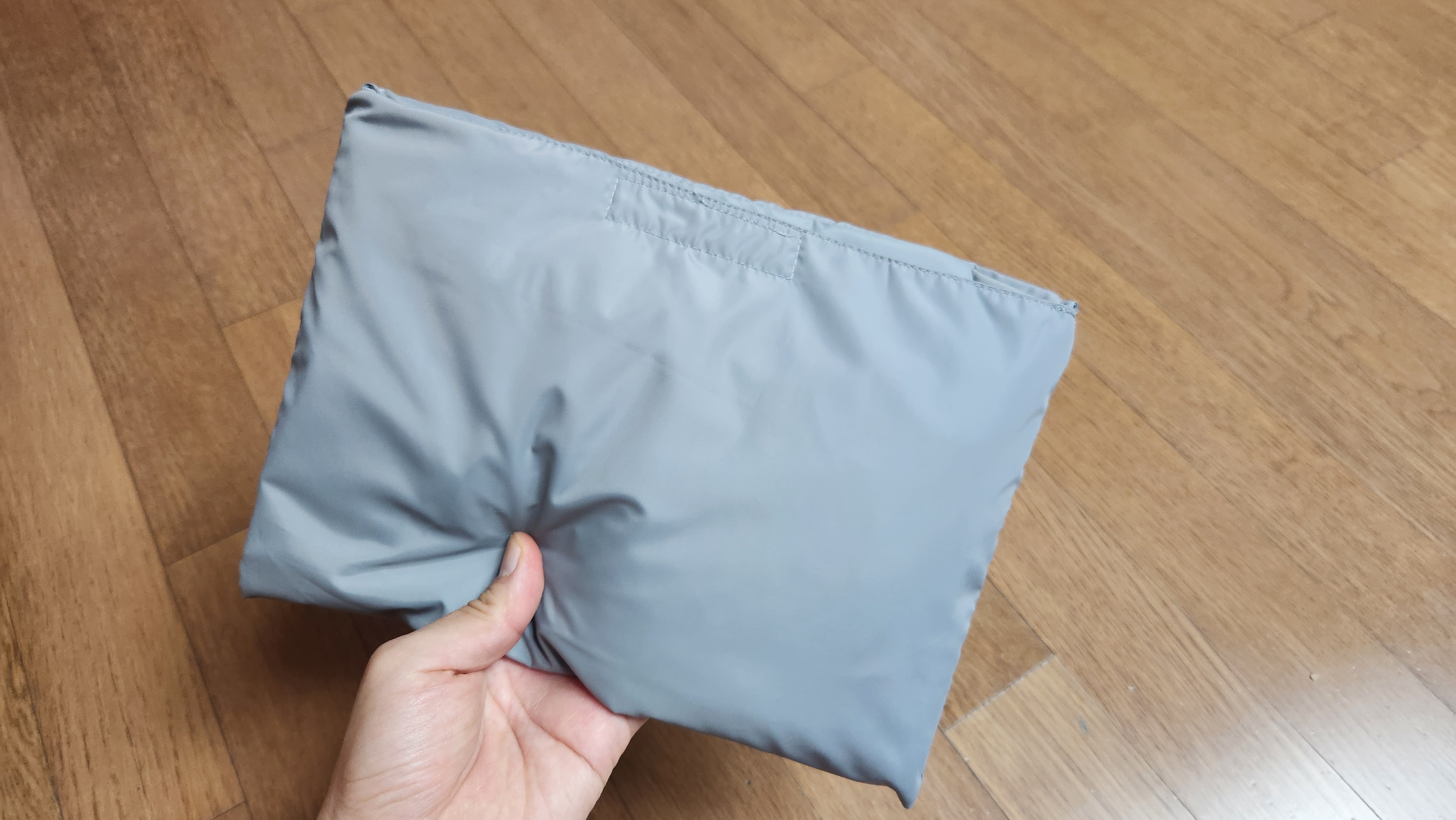 아이보리는 더 인기가 많아서 그런지 후딱 사라져서 우선 그레이로 받아왔습니다. 파우치가 아주 보들보들한 얇은 천입니다. 덕분에 무게가 상당히 가벼운 편구요.