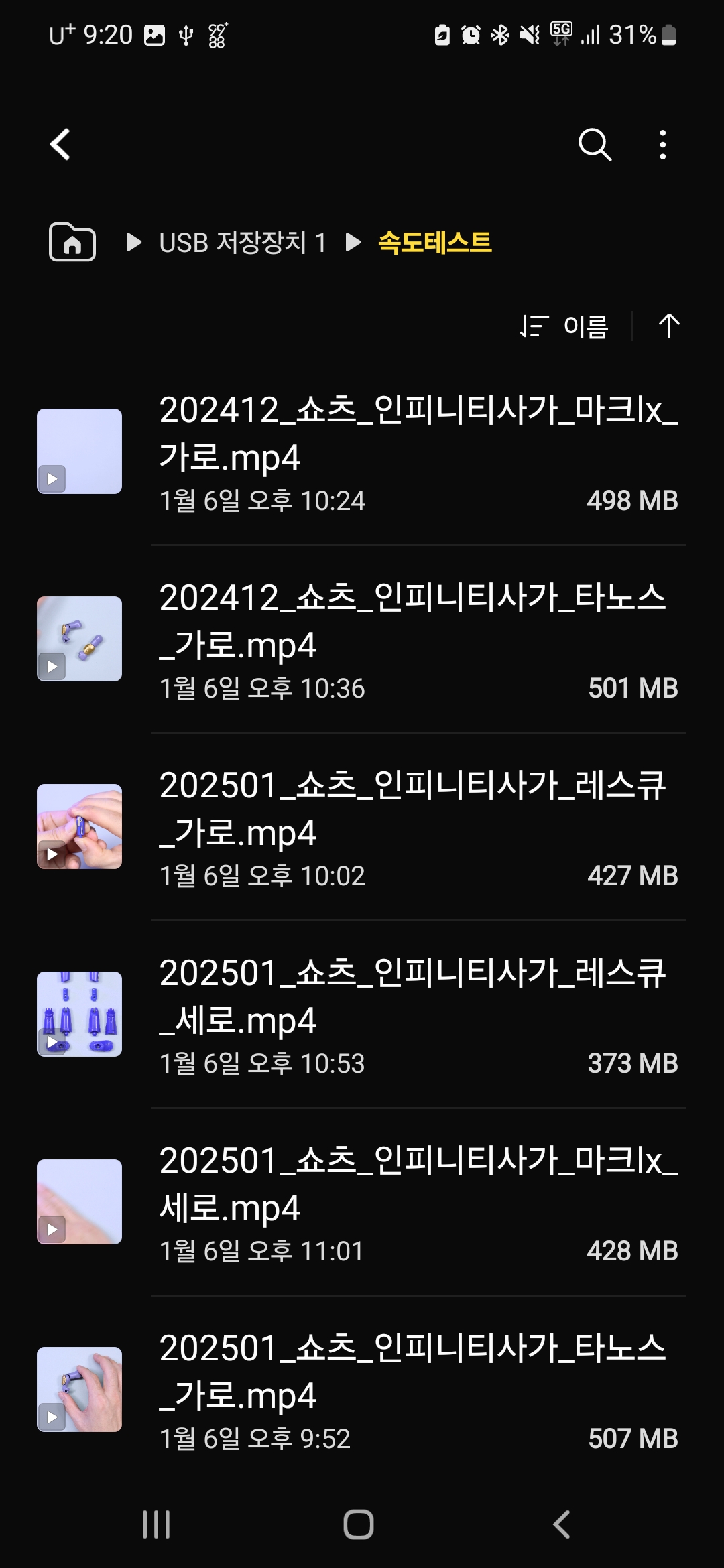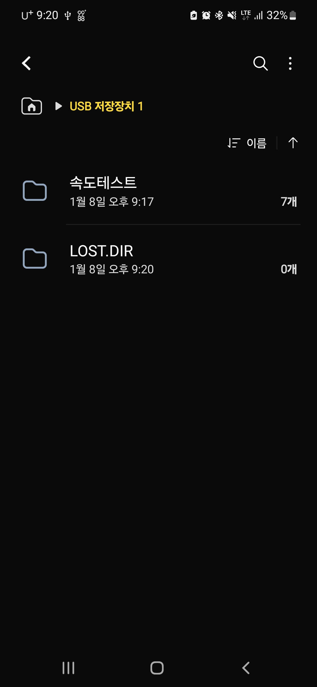 삼성 갤럭시 s22같은 안드로이드 os에서 파일을 접근하기 위해서는 기본적인 파일 어플리케이션을 통해 끼워진 플래쉬 드라이브를 쉽게 확인할 수 있습니다. 아래 맥북프로에서 옮겨진 속도테스트 폴더가 잘보입니다.