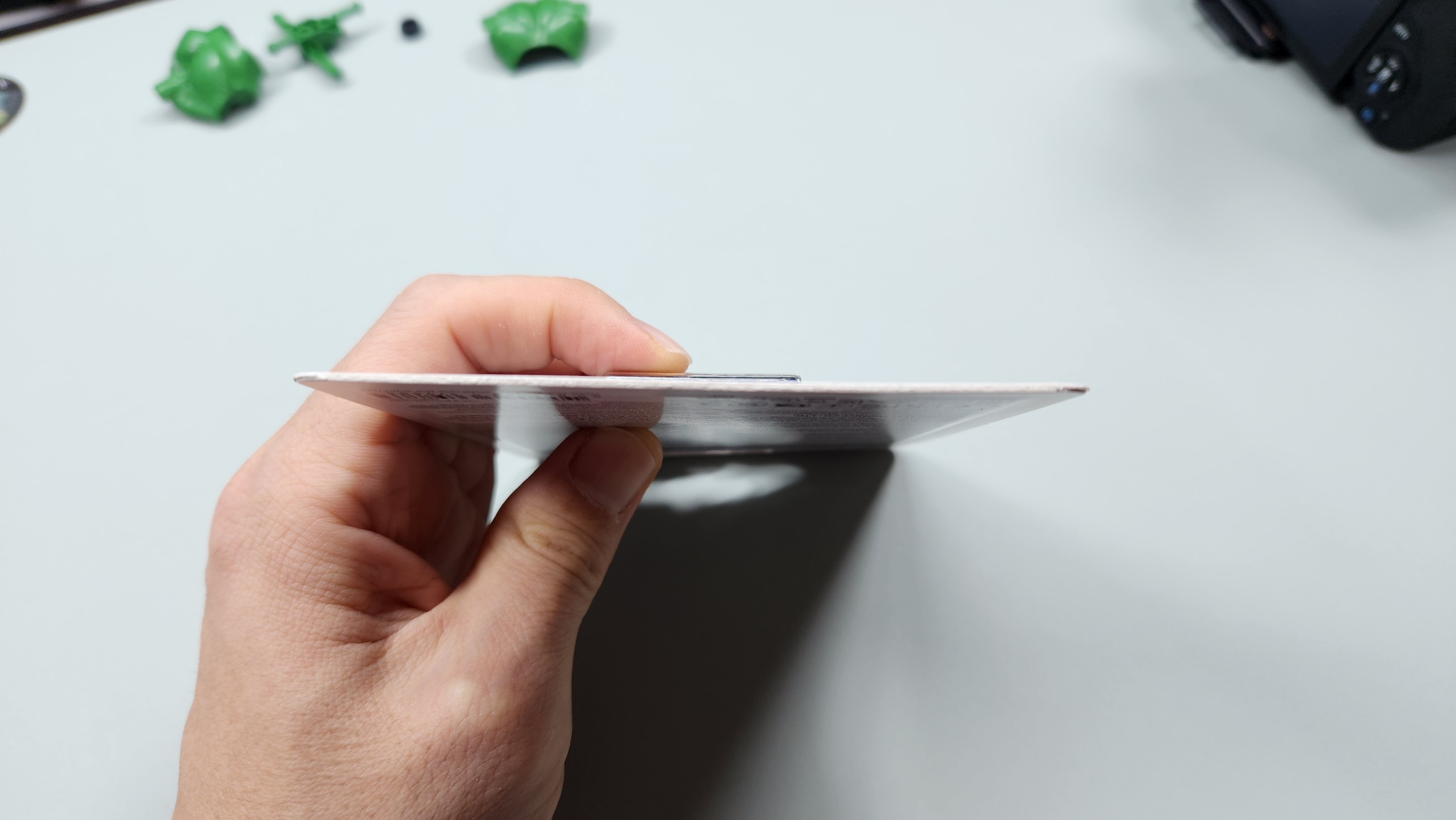 사이즈를 가늠하기 위해 손가락으로 쥐어 봤는데요. 정말 사이즈가 조그맣습니다. 앞 단자부분을 보호하기 위한 캡때문에 사이즈가 좀 더 커보이긴하지만 본체는 어주 컴팩트한 사이즈입니다.