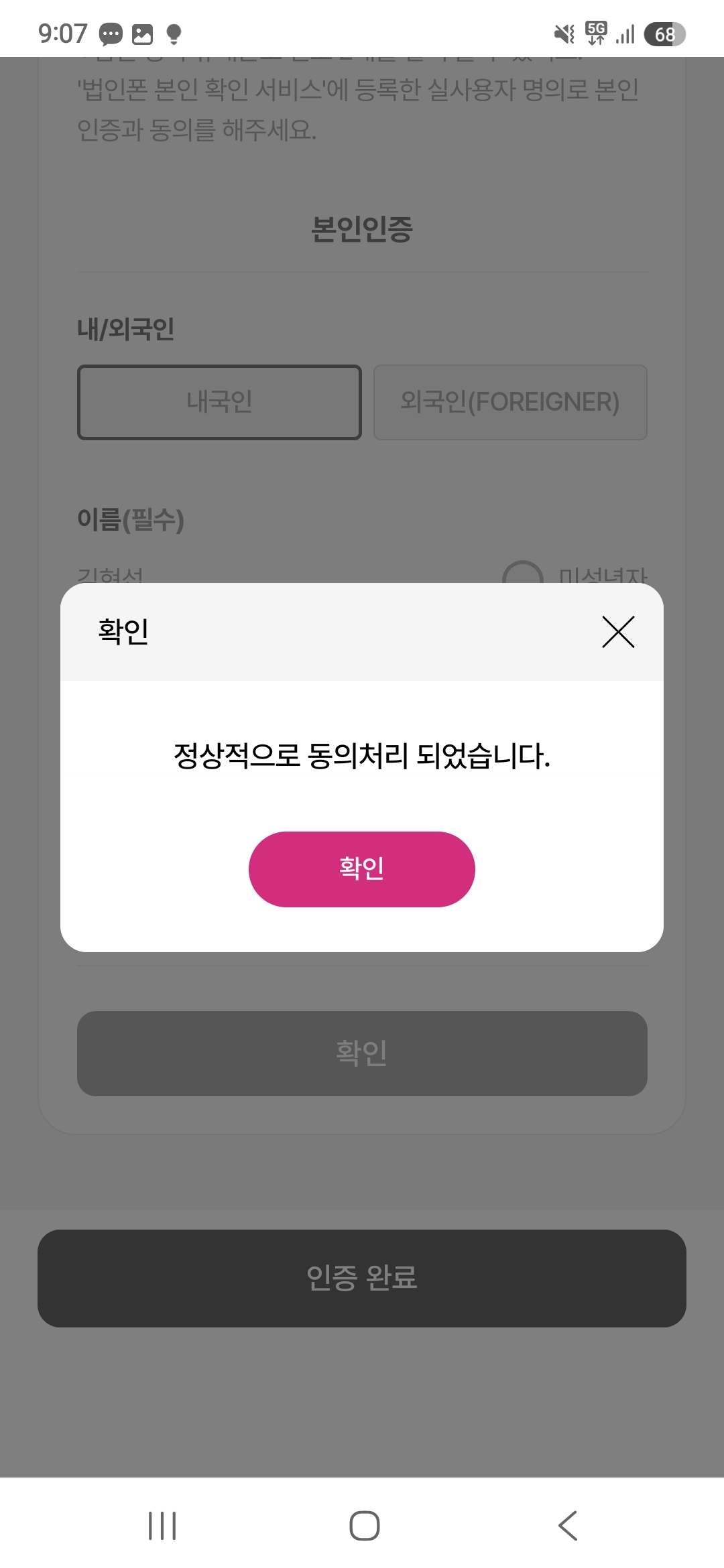 그럼 동의 절차를 진행했기 때문에 본인 인증 절차를 진행하게 됩니다.