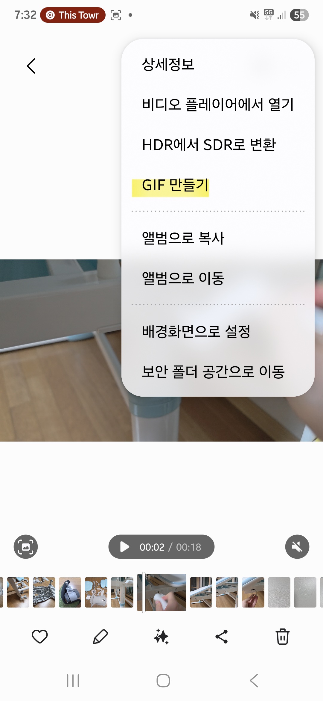 나타난 메뉴에서 "GIF 만들기"를 선택해줍니다.